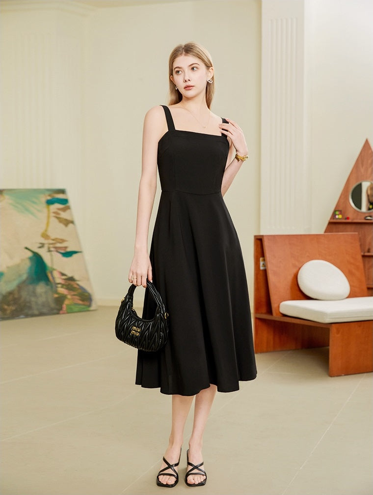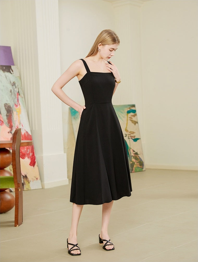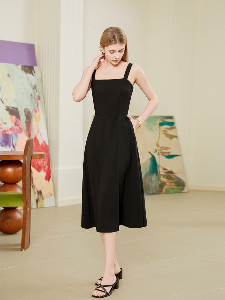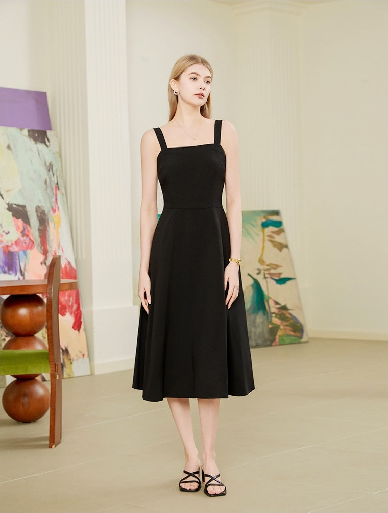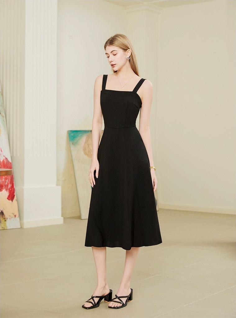 This sleek and stylish dress offers a modern twist on classic elegance. Featuring a square neckline and thick straps, it enhances the silhouette with a tailored, flattering fit that flows gracefully from the waist down. The clean, minimalist design is perfect for a variety of occasions, whether you’re dressing it up with accessories or keeping it simple for a more laid-back look. Versatile and chic, this piece can easily transition from day to night with ease.