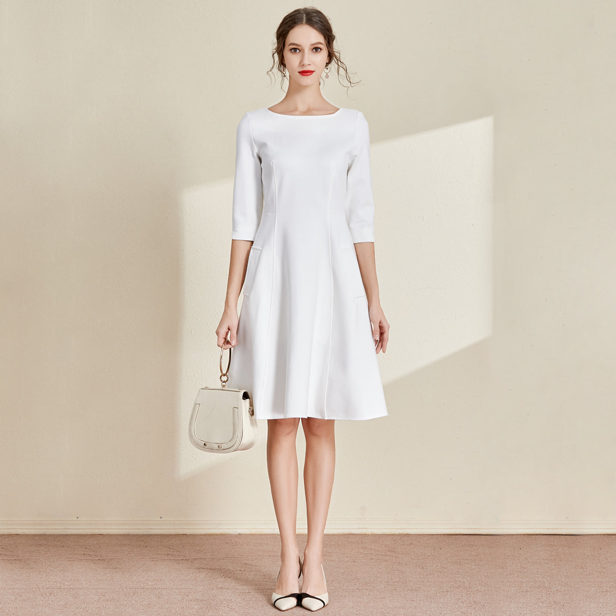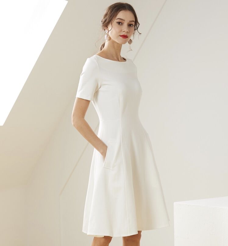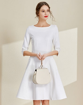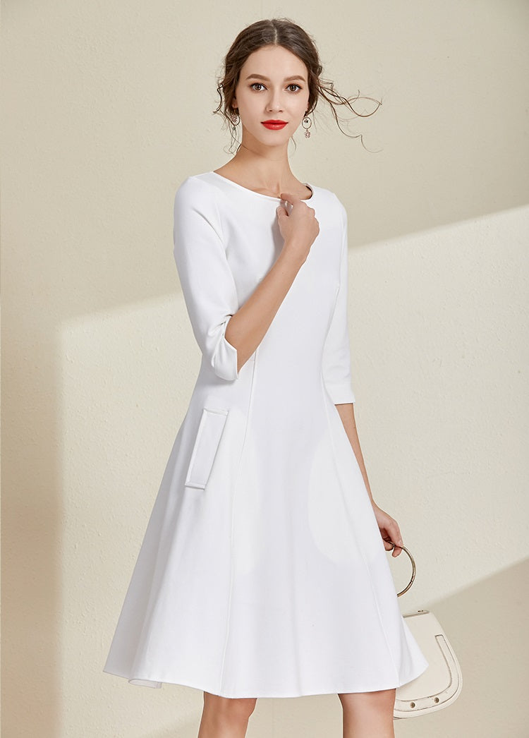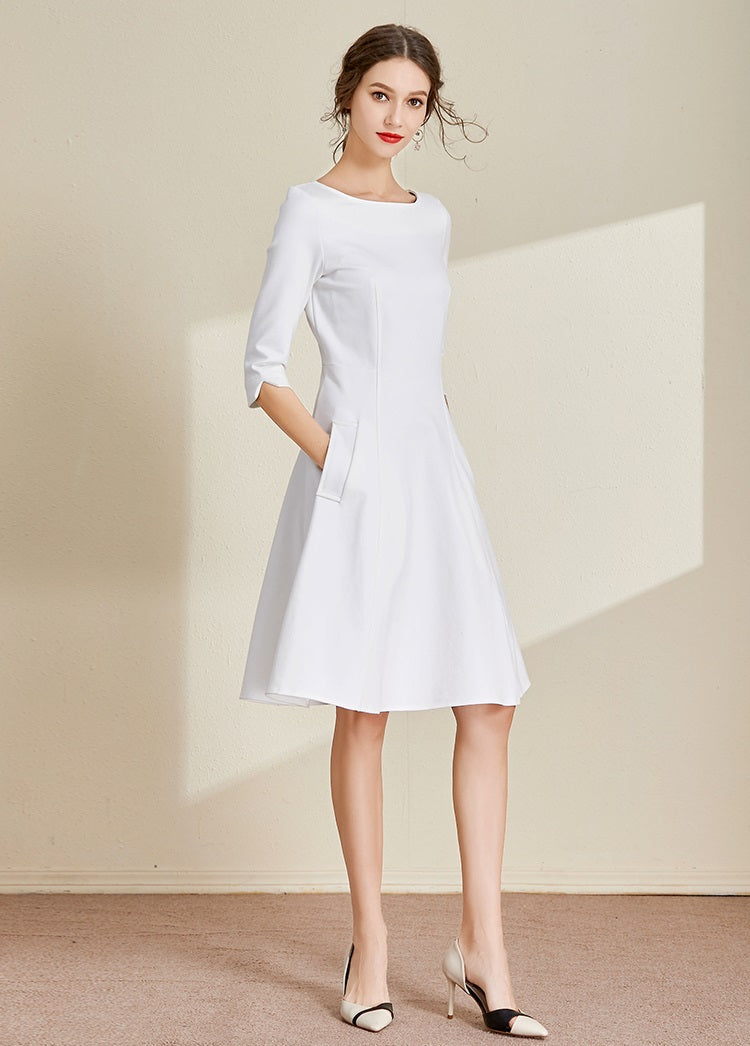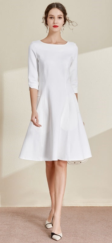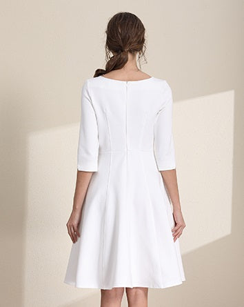 White Boat Neck Dress