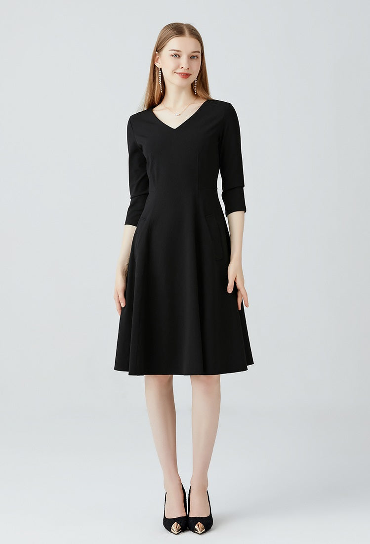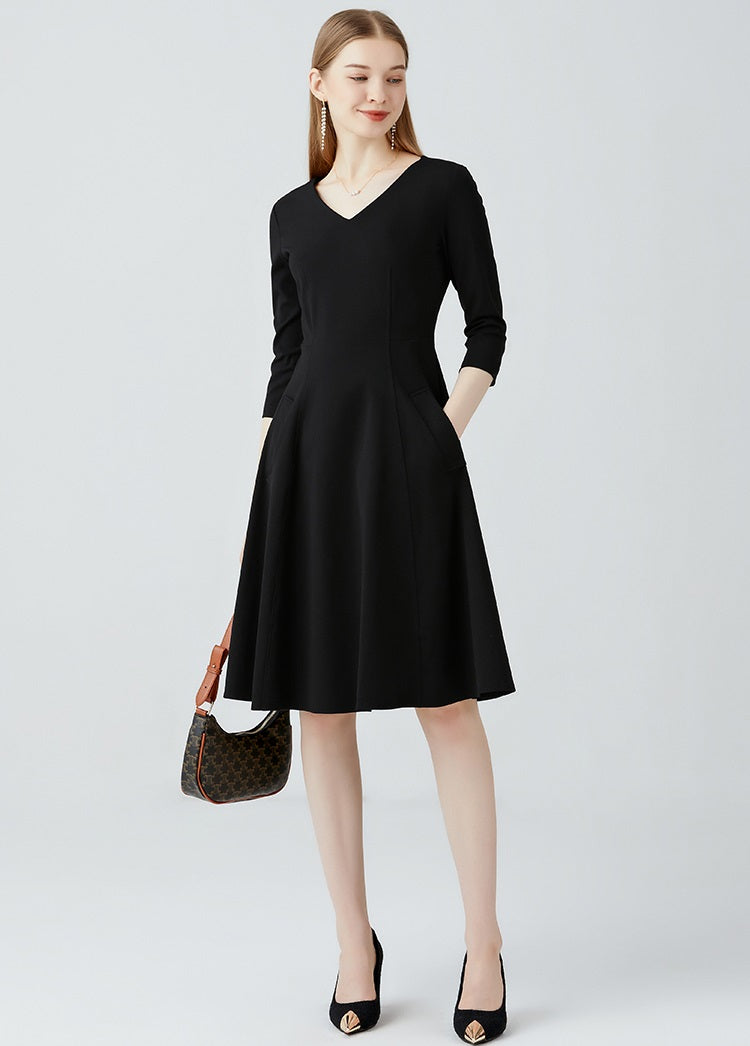 This dress features a charming V-neck design that adds a touch of elegance, while the graceful hem design enhances its overall silhouette. The stylish waistline design flatters the figure, making it perfect for daily wear with a refined yet effortless look.