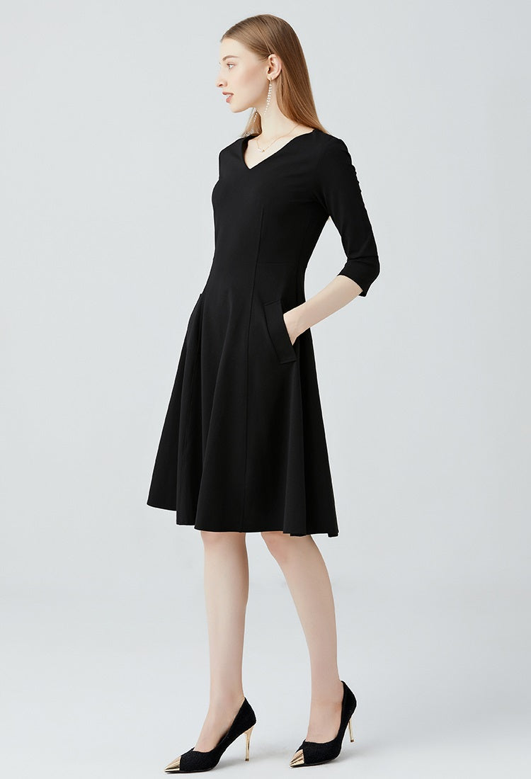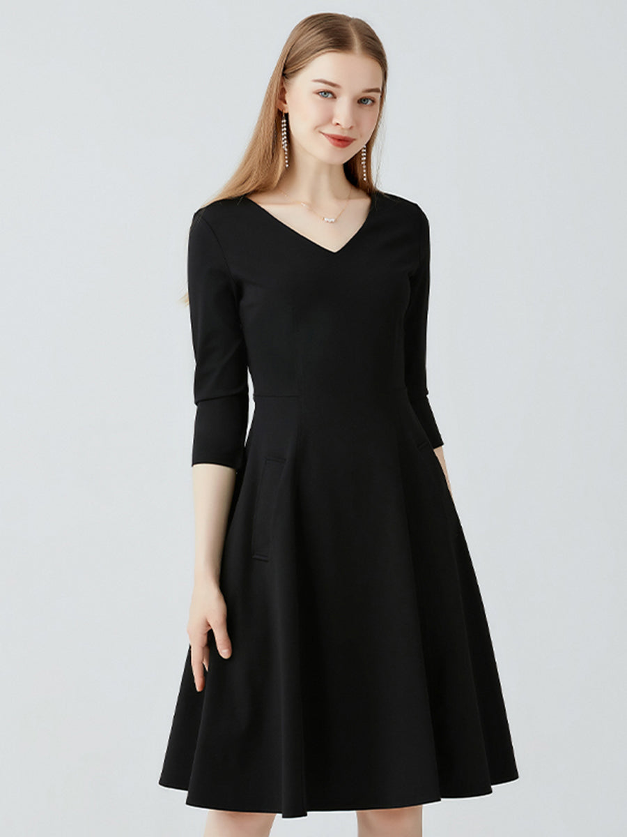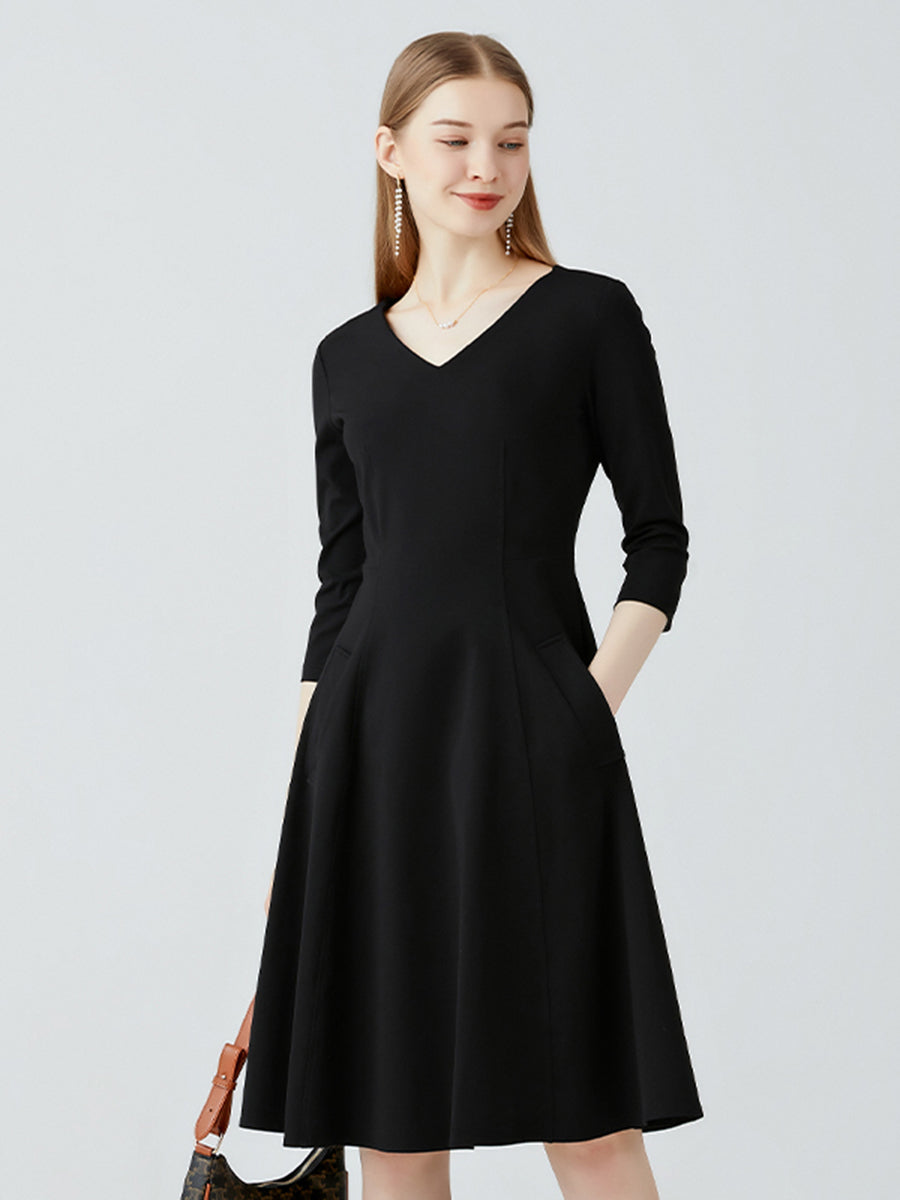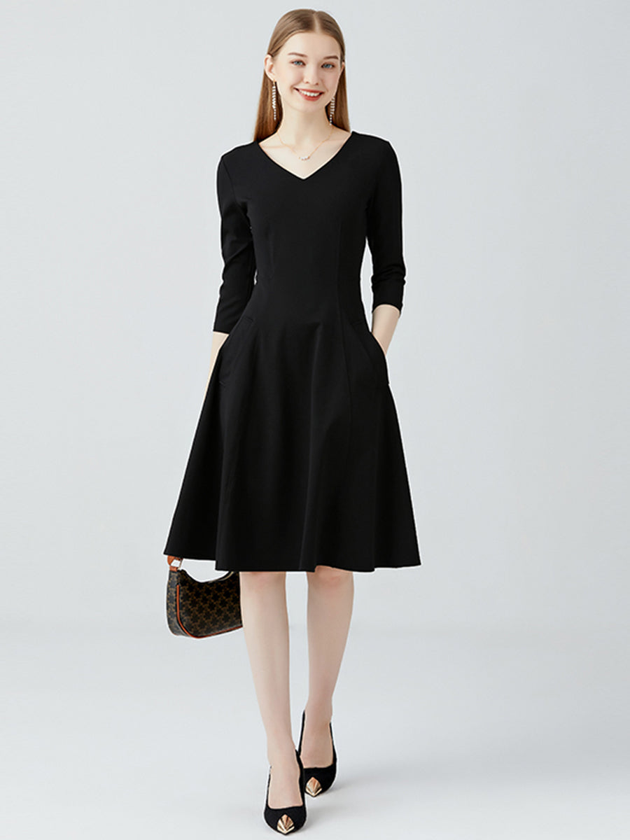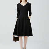 Long Sleeved Slim Fit V-neck Dress