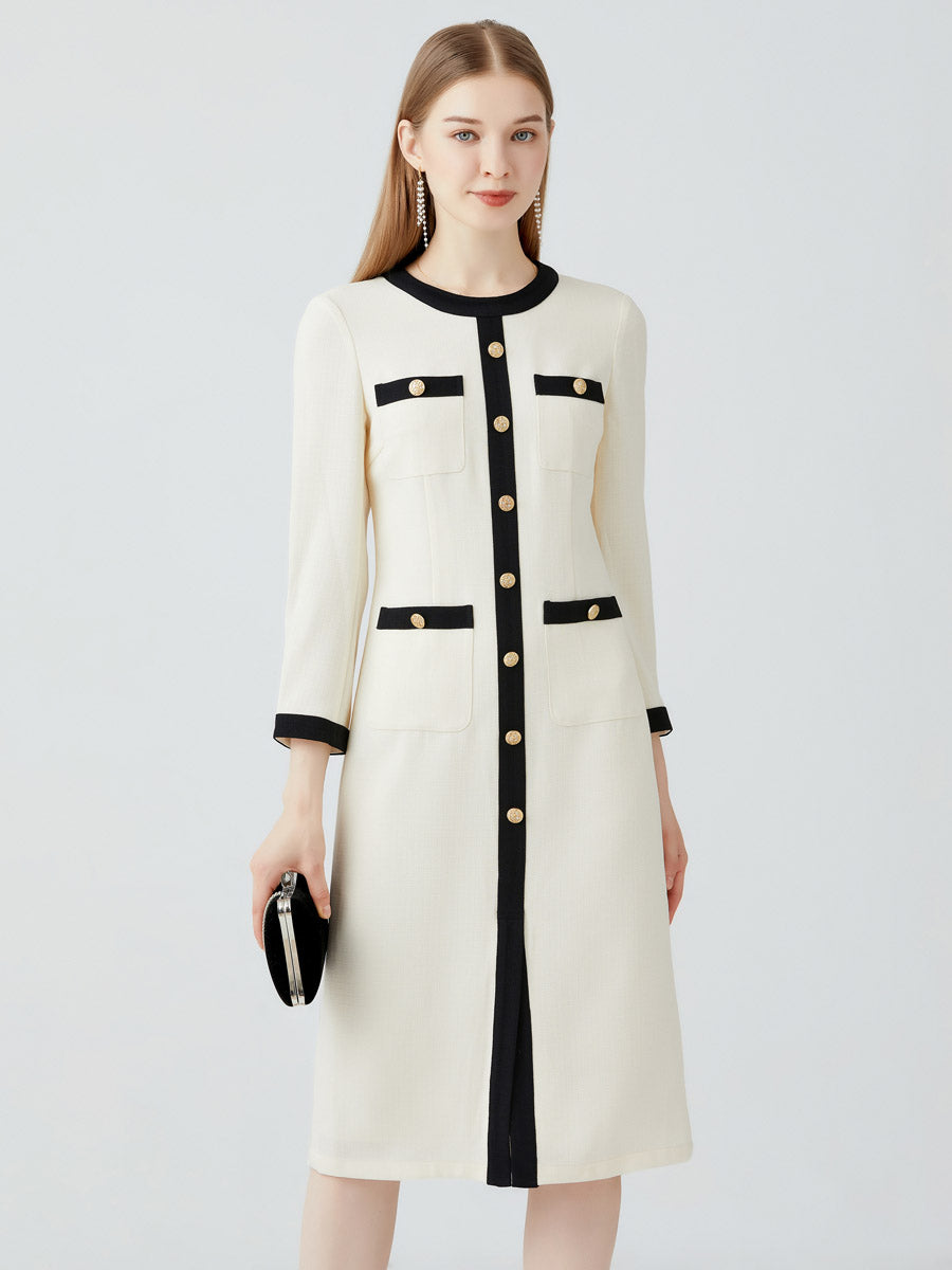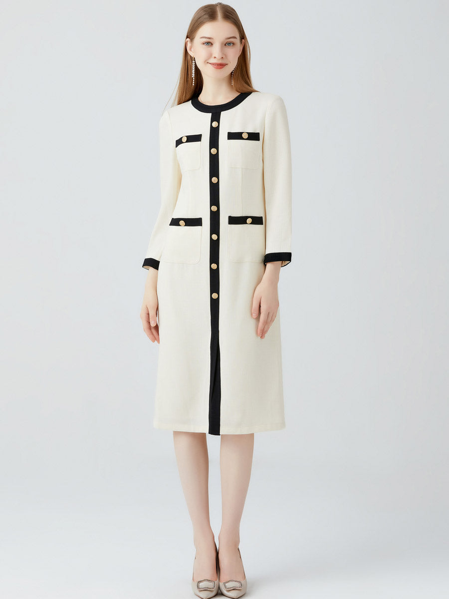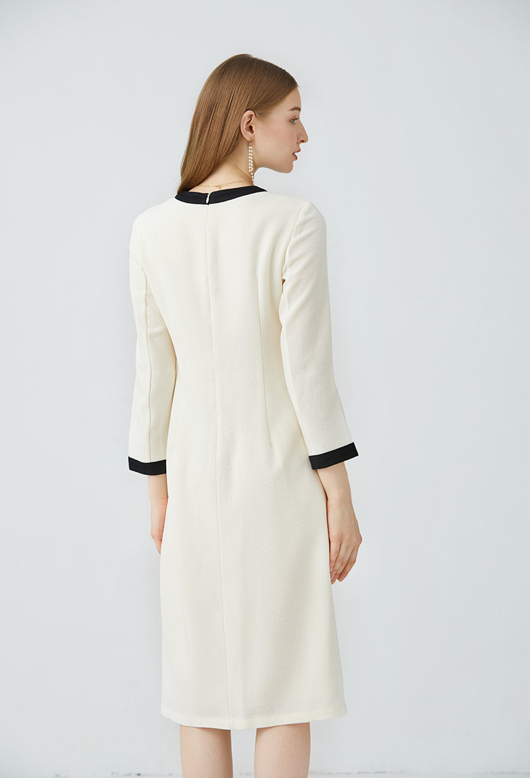 This dress features a round neck design that beautifully highlights the collarbone and elongates the neckline for a graceful appearance. The stylish waistline design enhances the silhouette, adding a touch of sophistication and elegance.