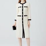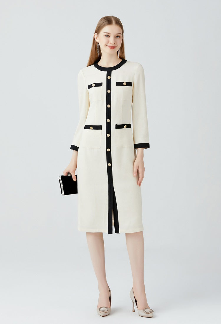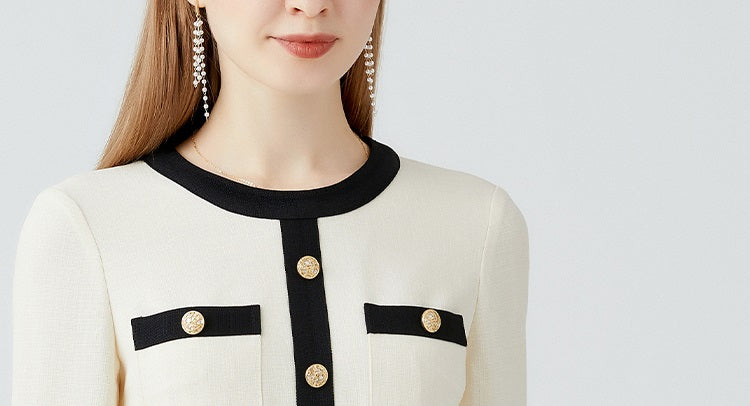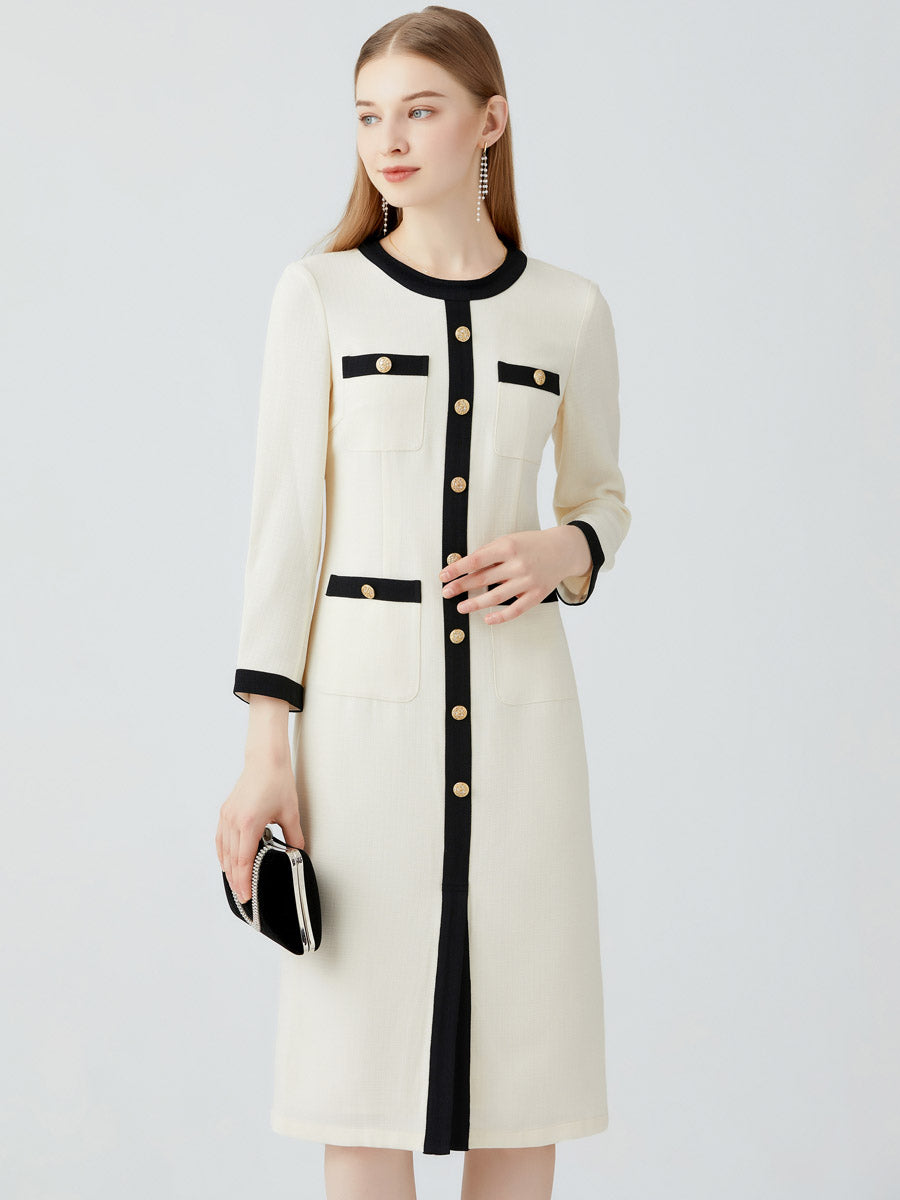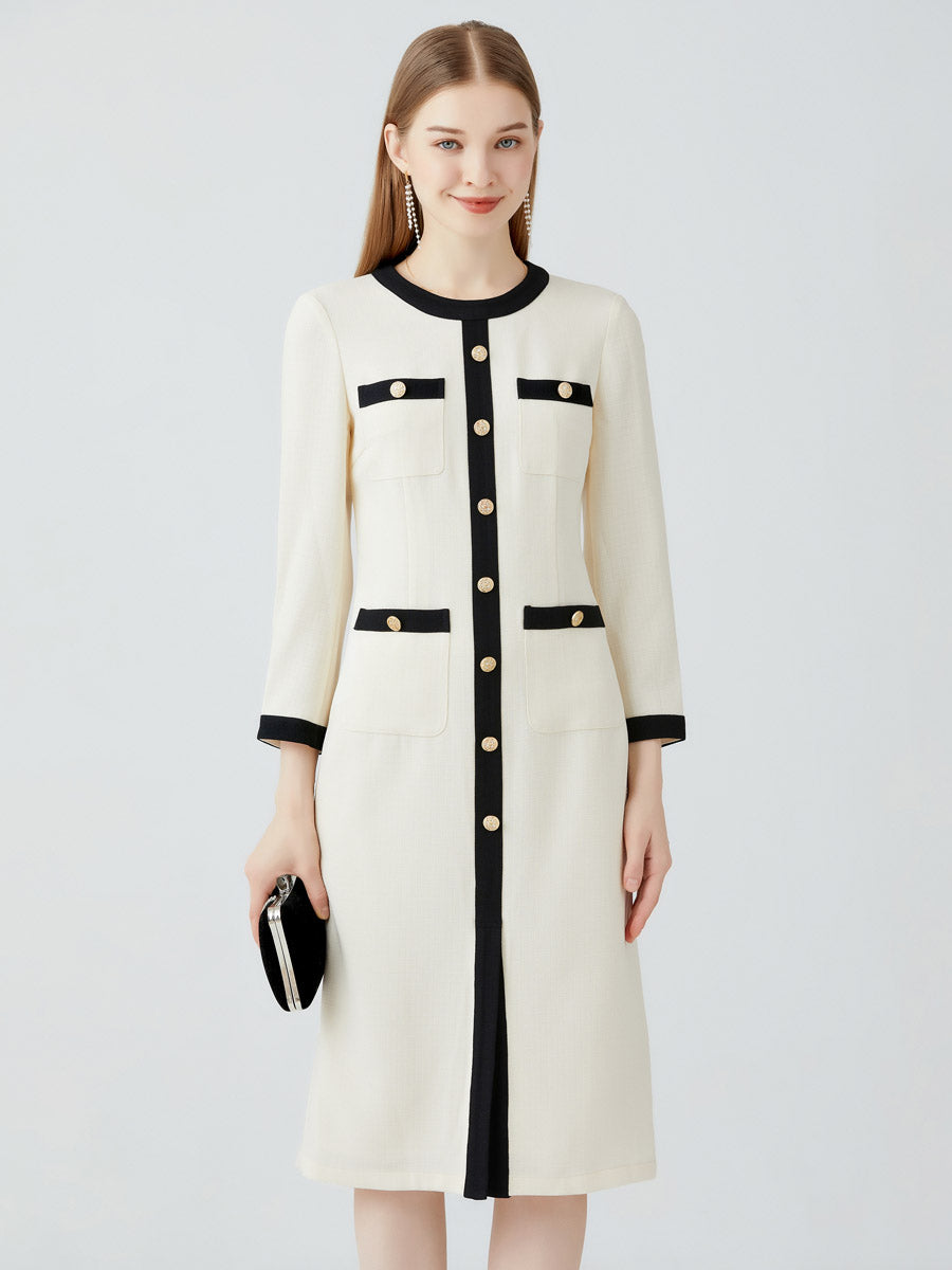 This dress features a round neck design that beautifully highlights the collarbone and elongates the neckline for a graceful appearance. The stylish waistline design enhances the silhouette, adding a touch of sophistication and elegance.