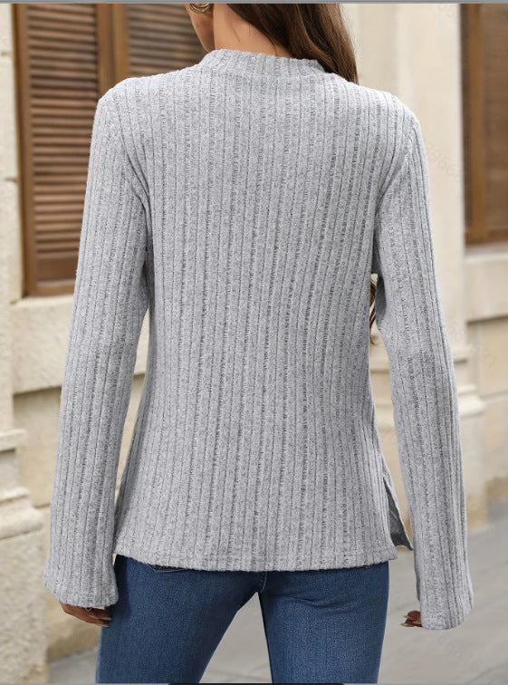 Soft sophistication defines this wardrobe essential. With its gentle ribbed texture and subtly tailored silhouette, this long-sleeve crewneck top offers a polished, elevated take on everyday basics. The high-stretch knit fabric ensures comfort without compromising structure, while the clean lines and extended length add a sense of modern minimalism. Whether layered or worn solo, this versatile piece blends seamlessly into a refined, high-end wardrobe.