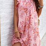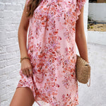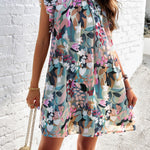 Floral Ruffle Sleeve A-Line Dress