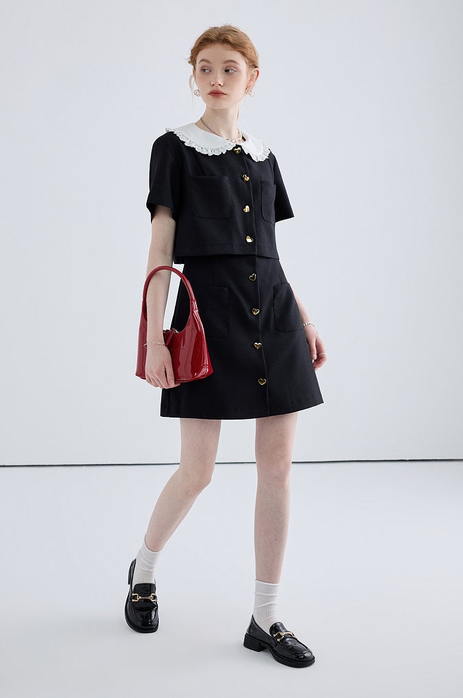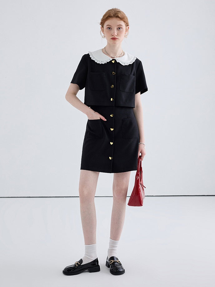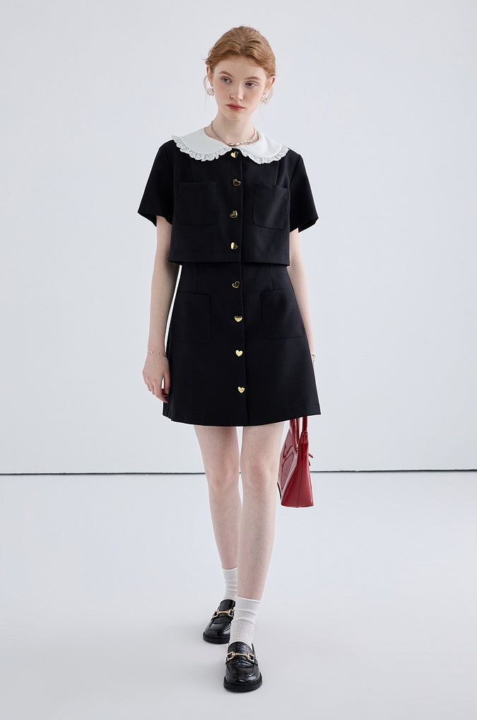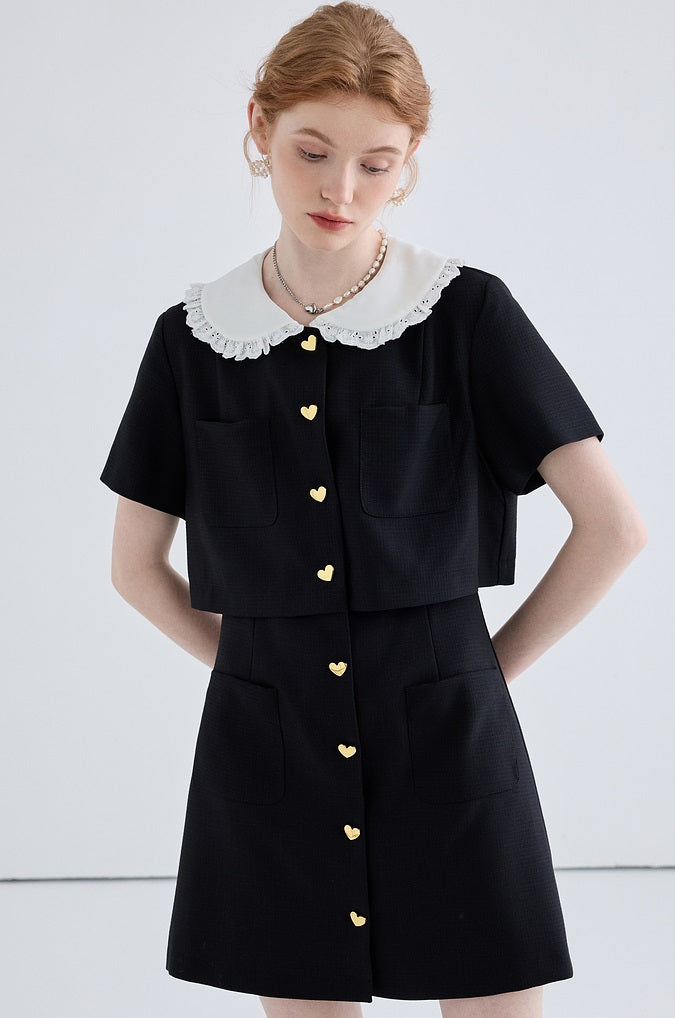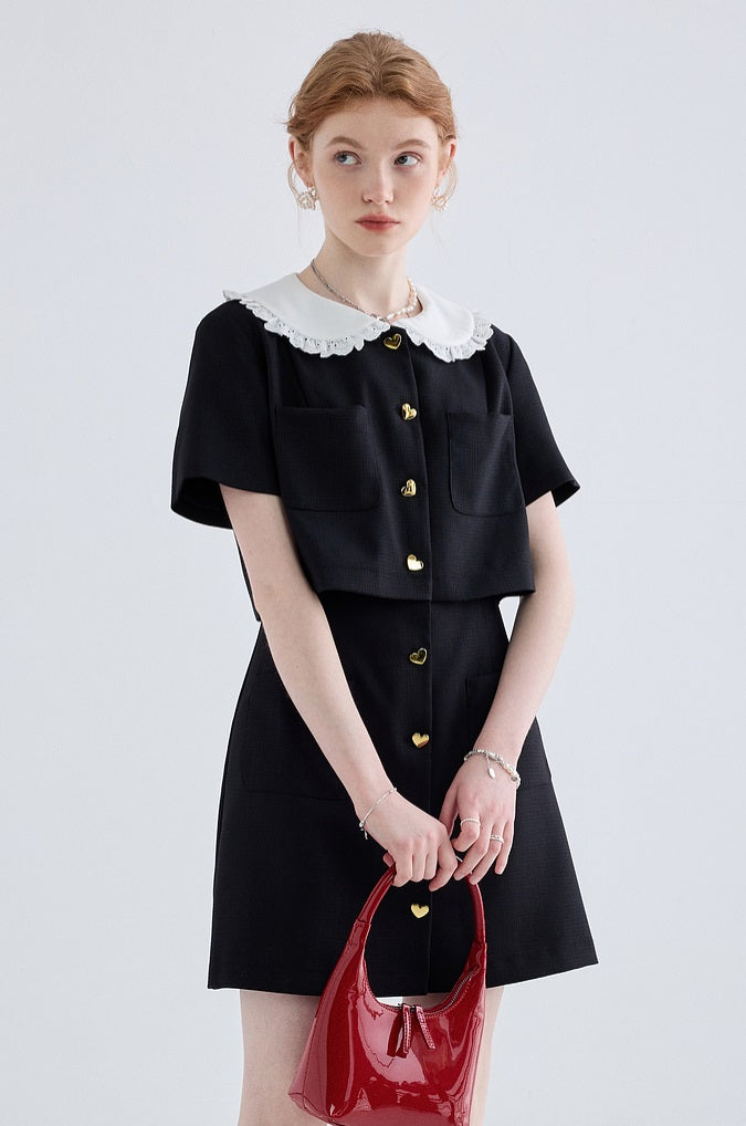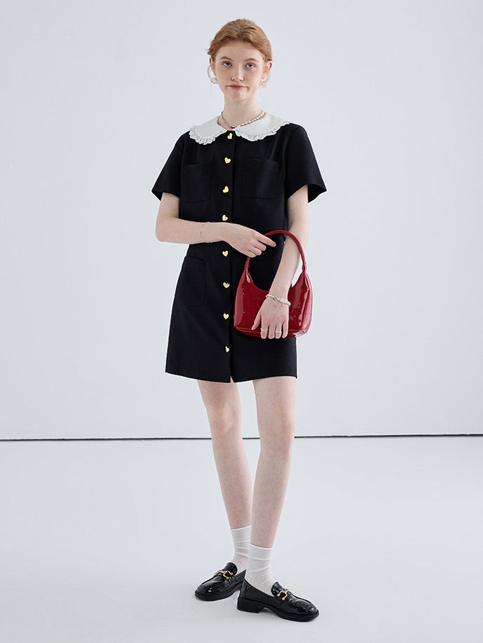 Heart Shaped Button Short Sleeved Dress