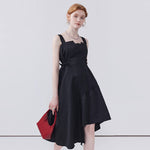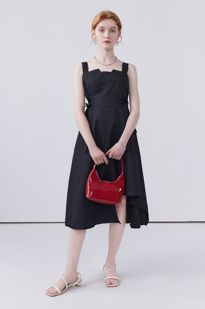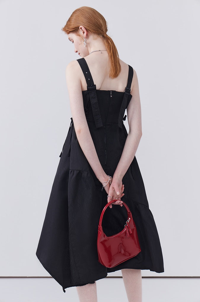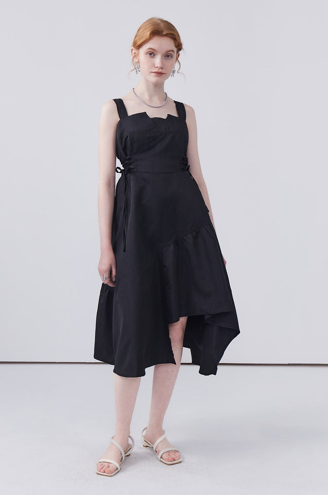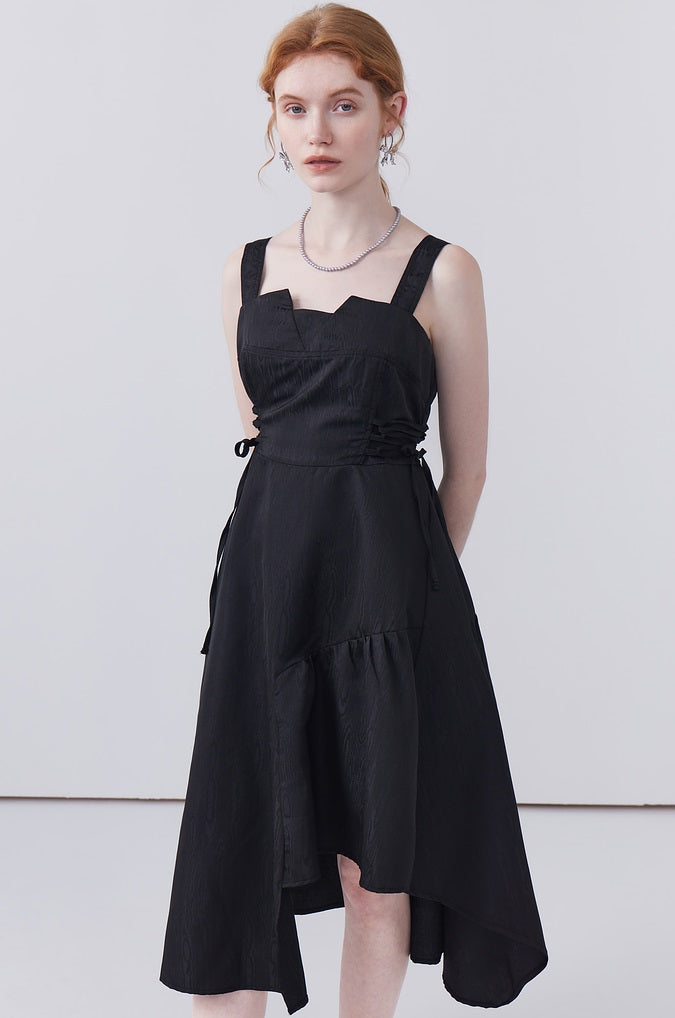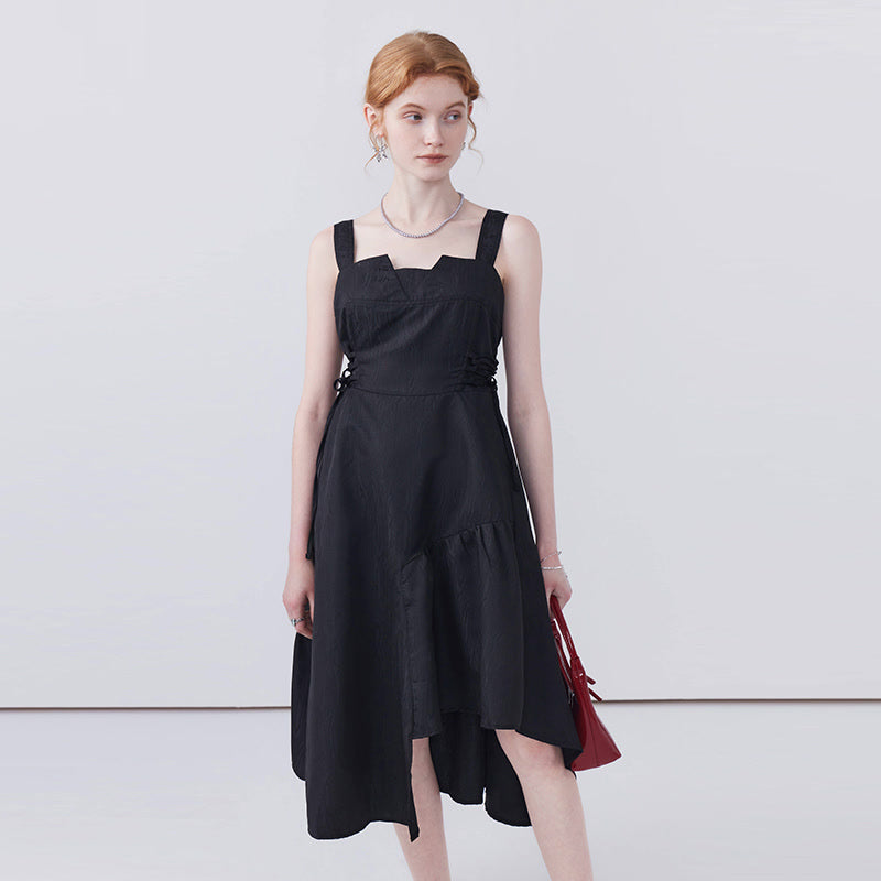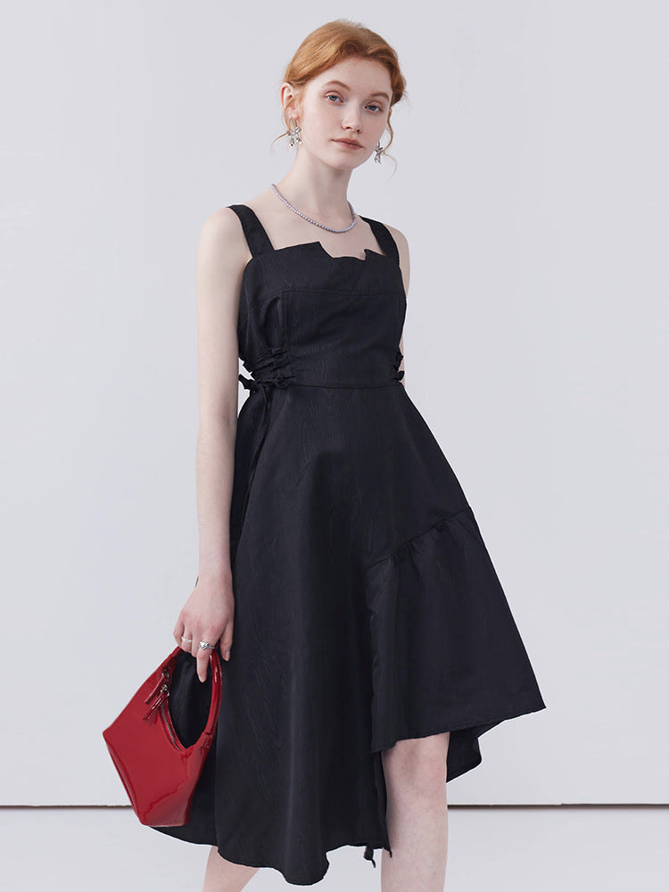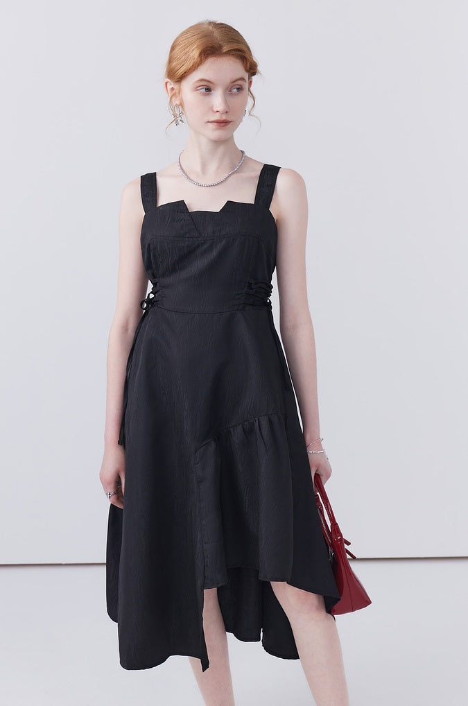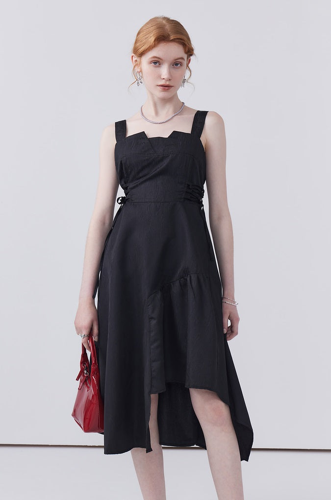 This dress features a waist-cinching strap design that accentuates your shape, while the irregular hem adds a playful touch and allows for easy movement, making it both stylish and practical for any occasion.