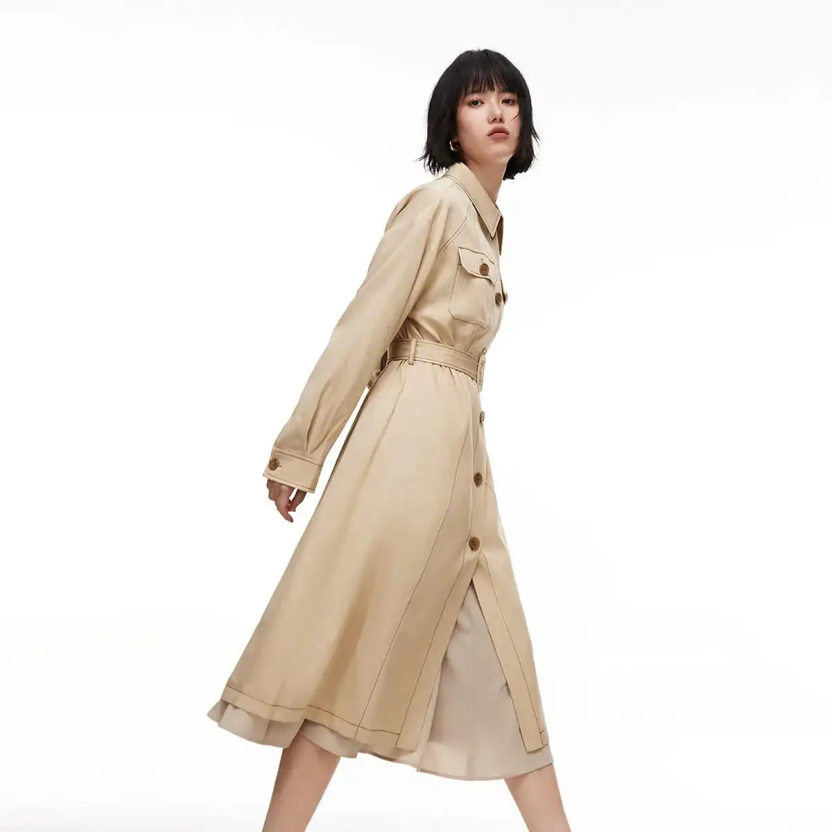 Loose Collar Split Trench Coat