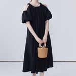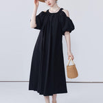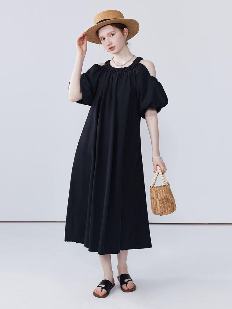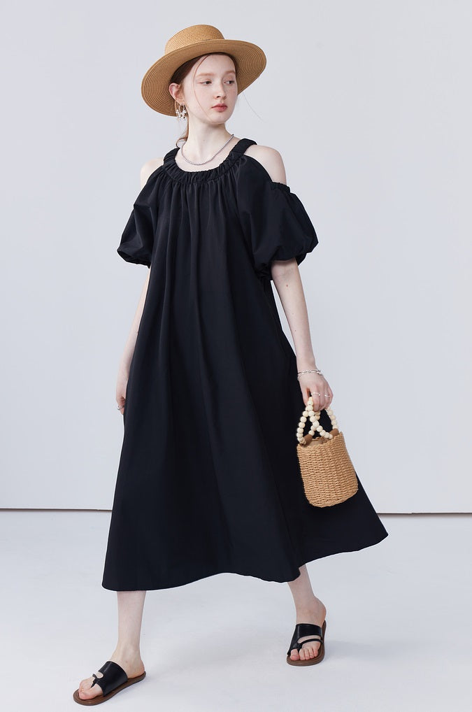 This dress features an off-the-shoulder design that is both comfortable and elastic, offering a flattering fit. The French puff sleeves add a touch of elegance and romance, creating a timeless and chic look.