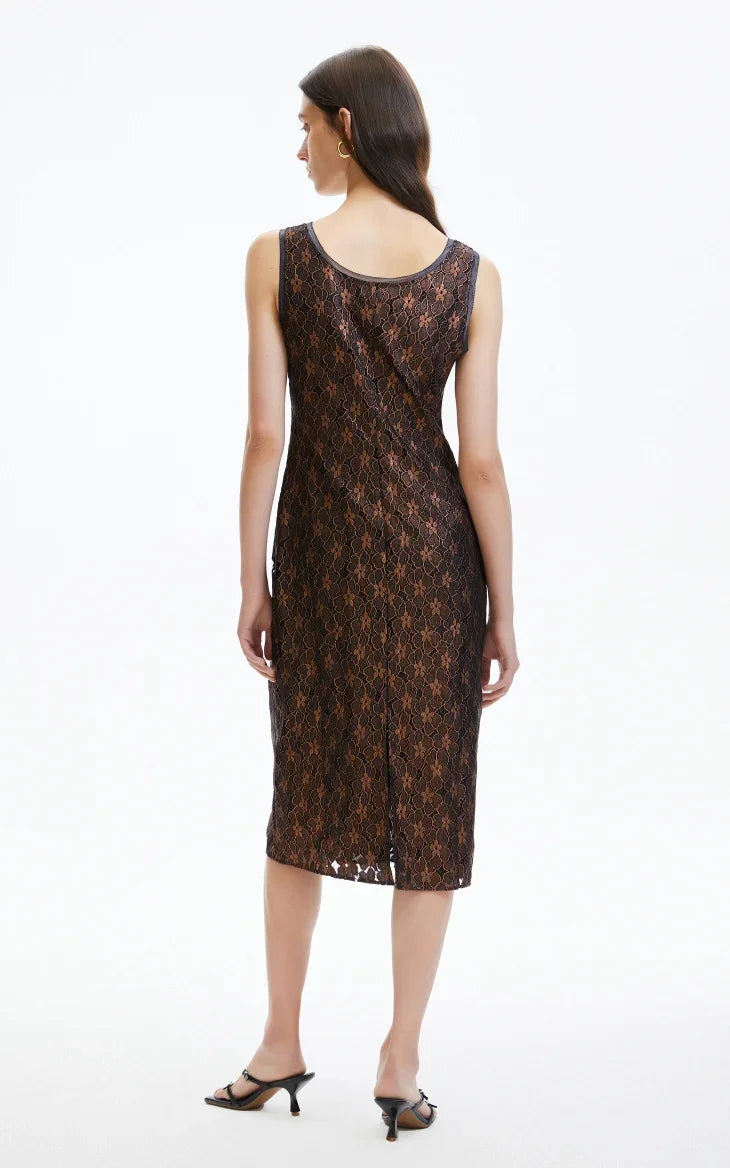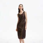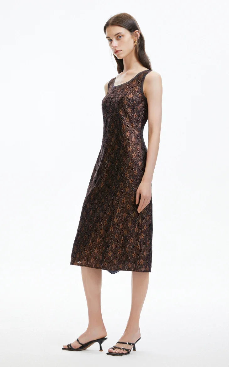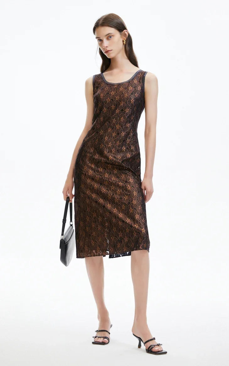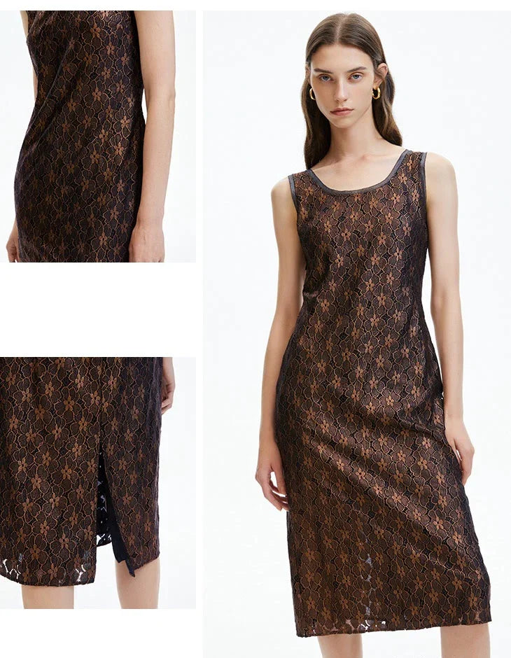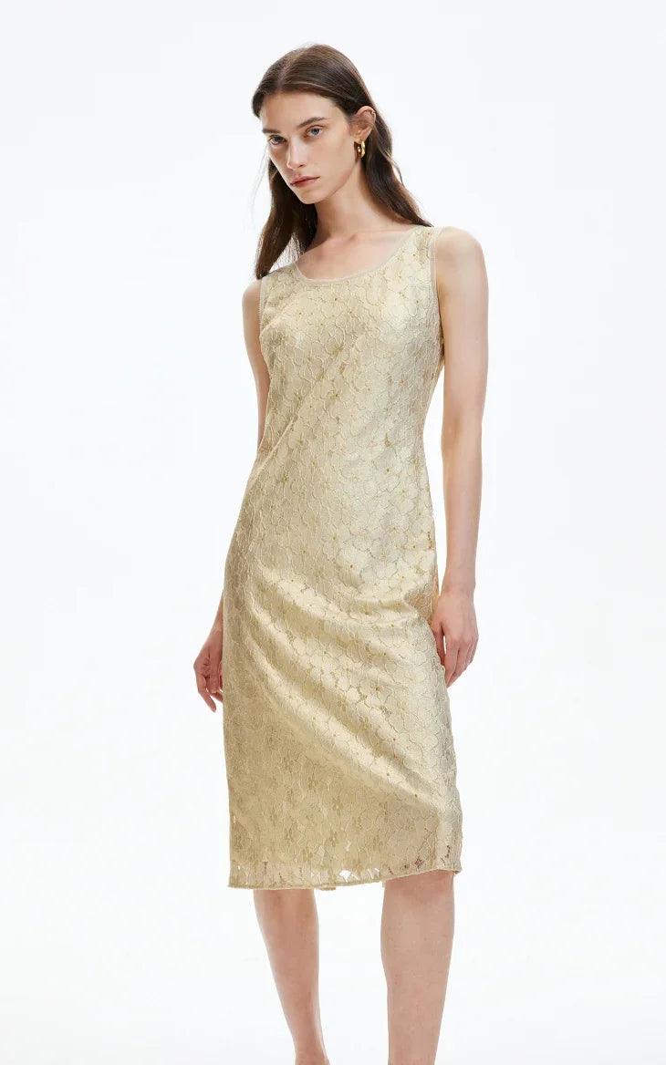 This dress features a stylish metallic hollow design that adds a unique touch, while the slim waist enhances the silhouette. The comfortable slit design allows for easy movement, blending fashion with practicality.