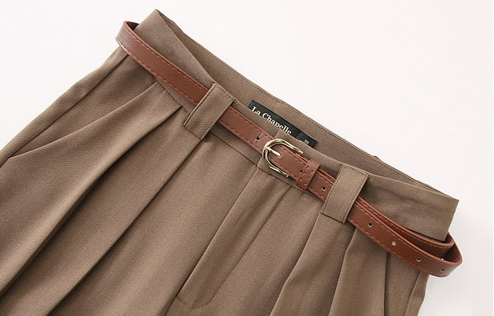Pleated suit pants loose straight trousers (comes with a random colour belt)