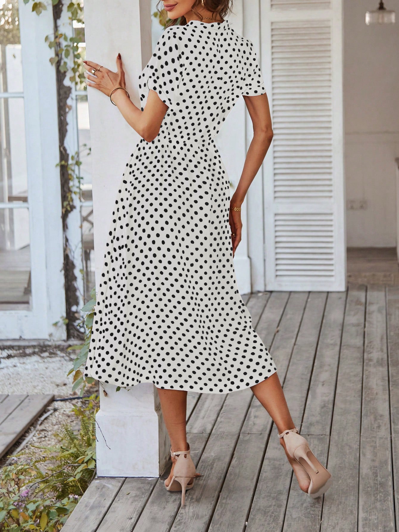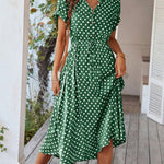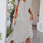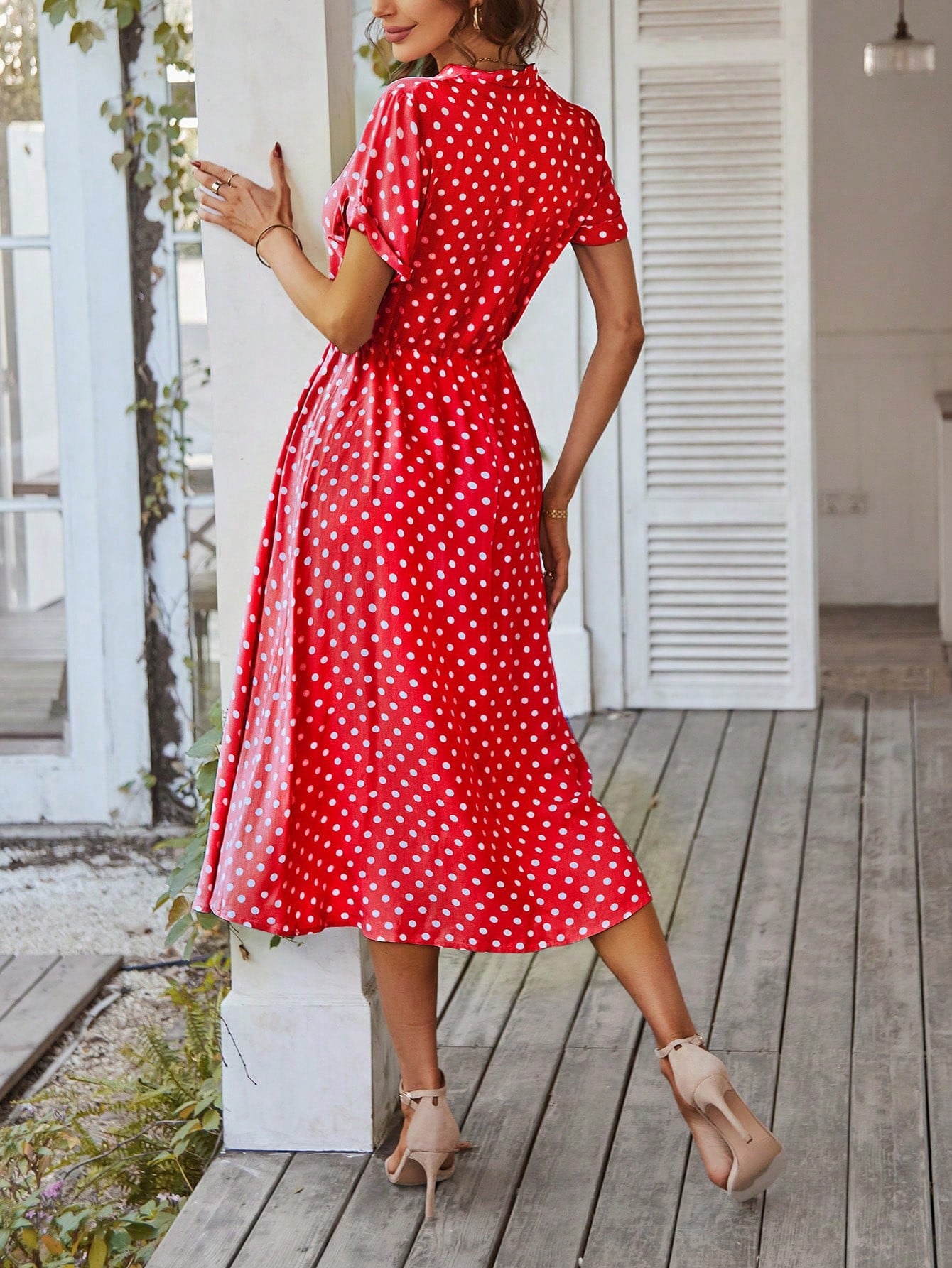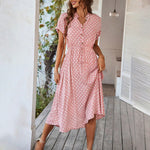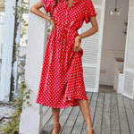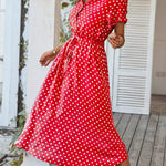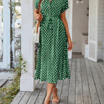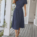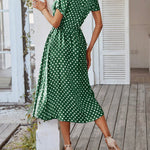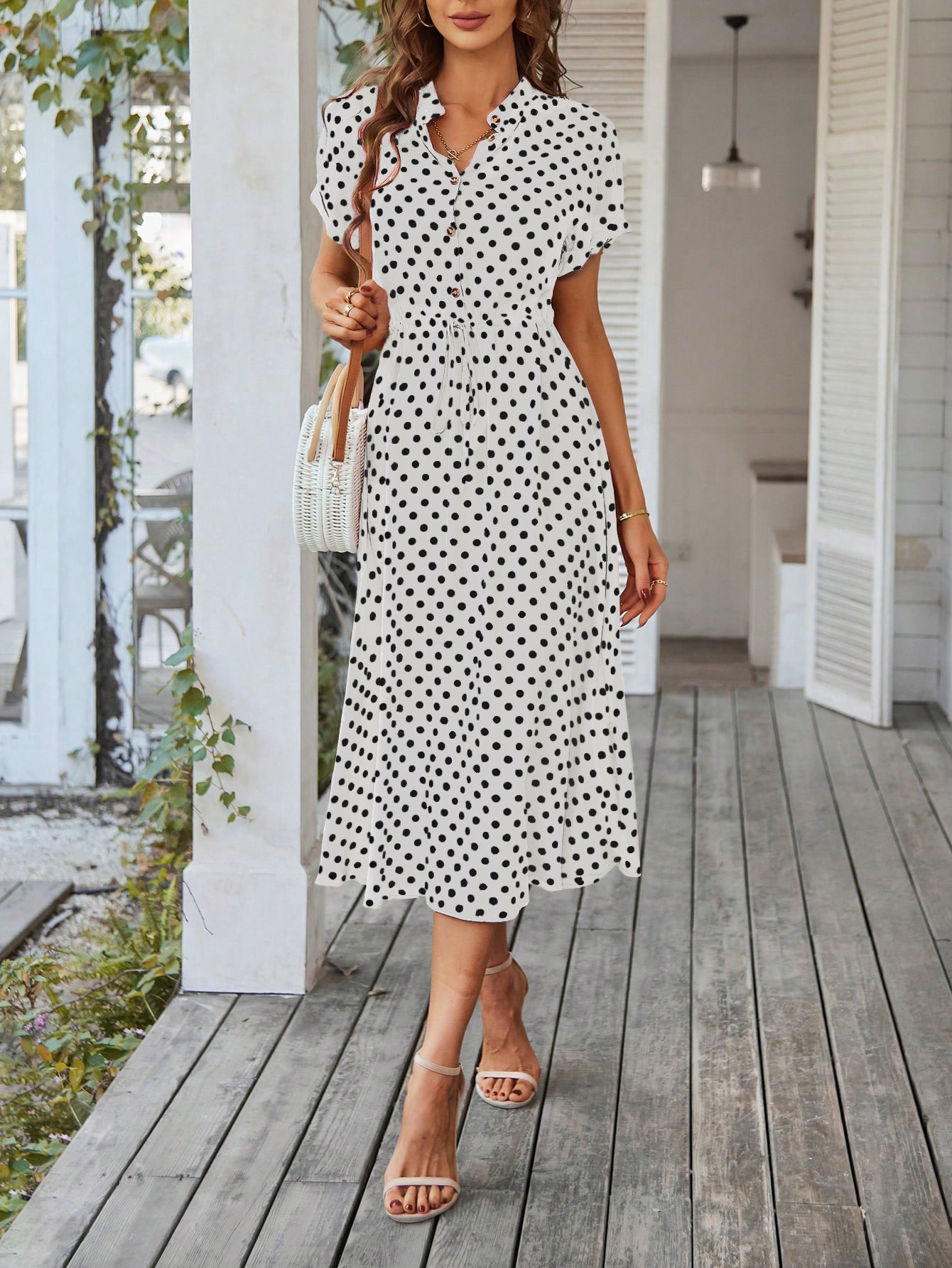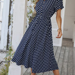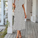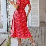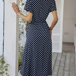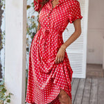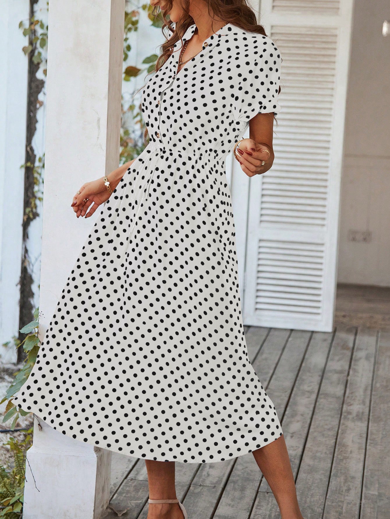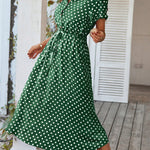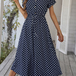 Polka Dot Midi Dress with Drawstring Waist