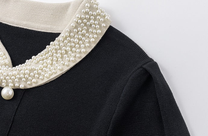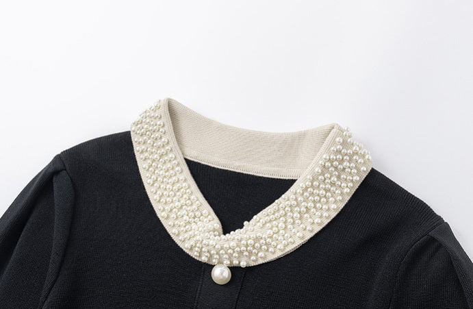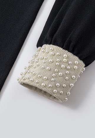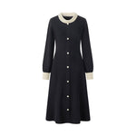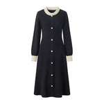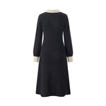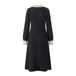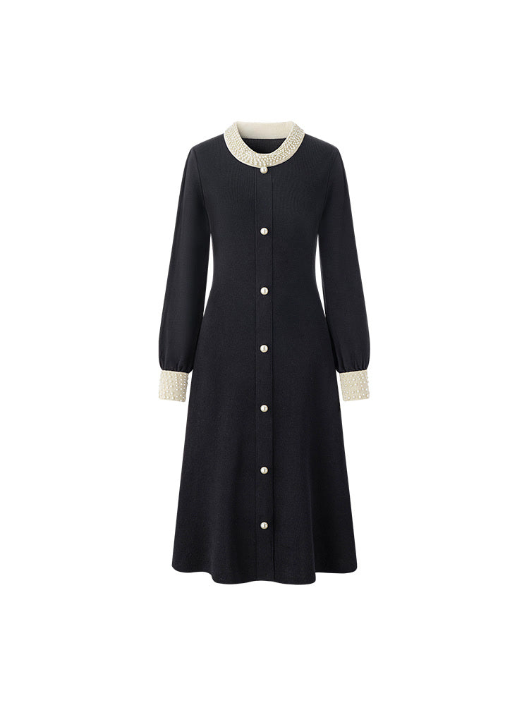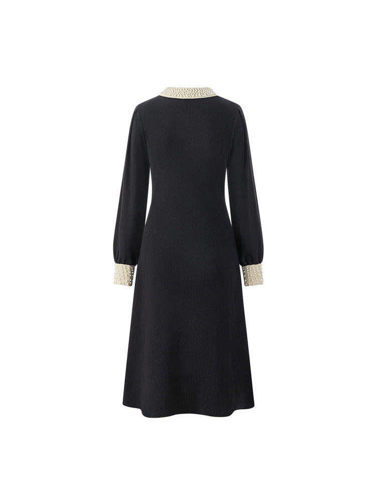 This dress features a decorated round neck, exuding elegance and romance. The flat skirt adds a detailed touch, while the unique cuff design completes the look, offering a refined and stylish silhouette perfect for any occasion.