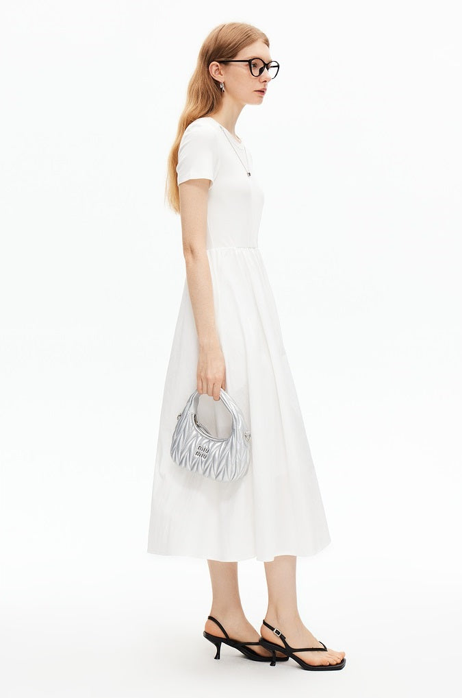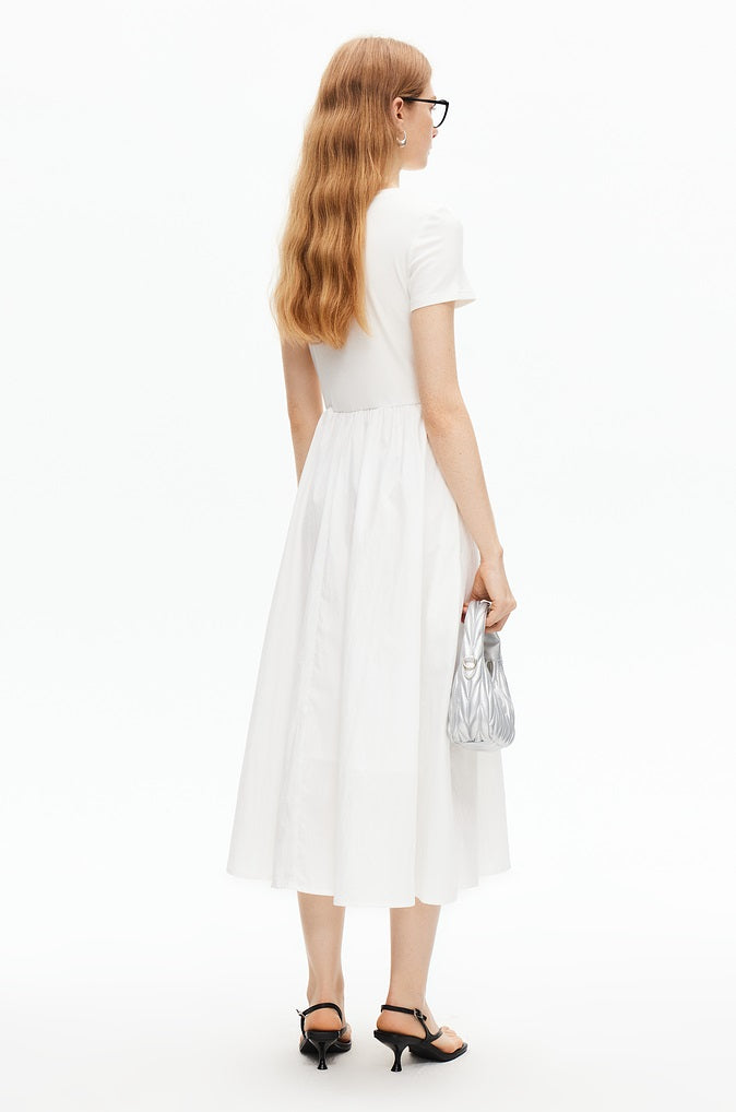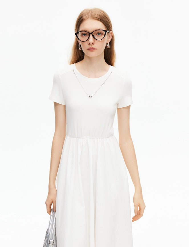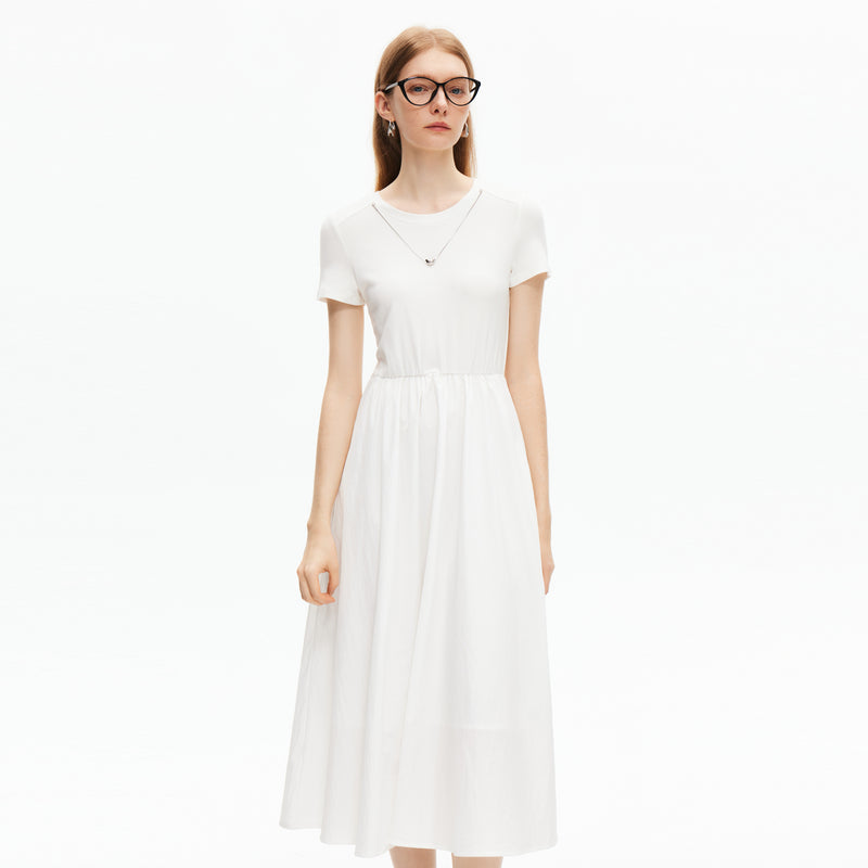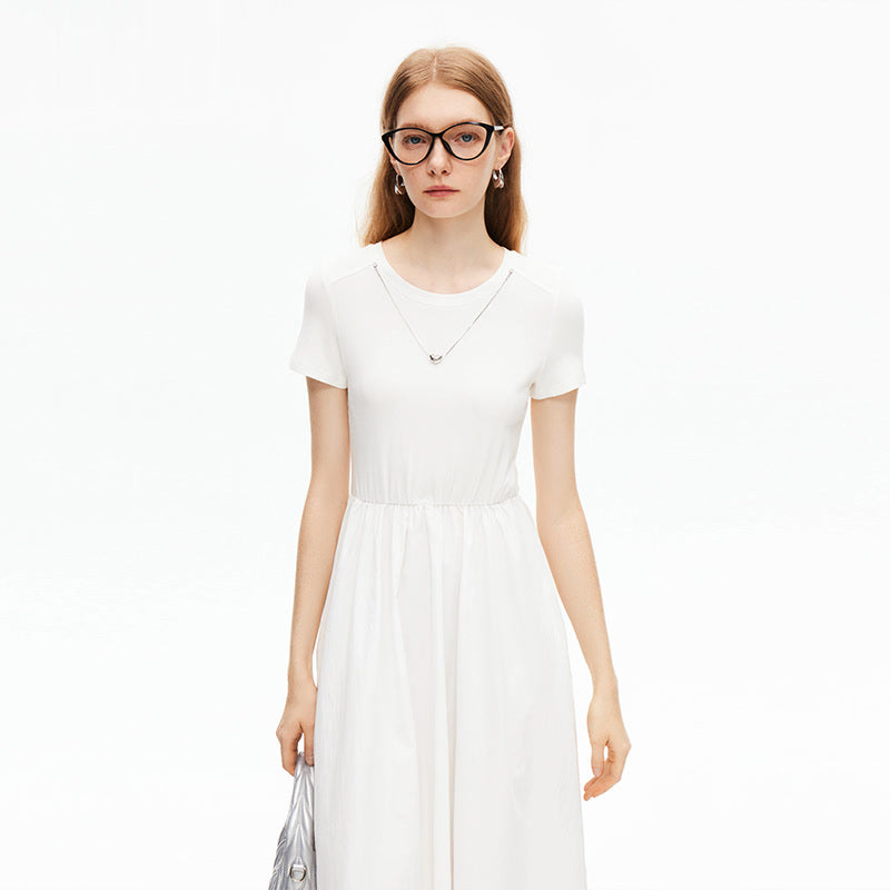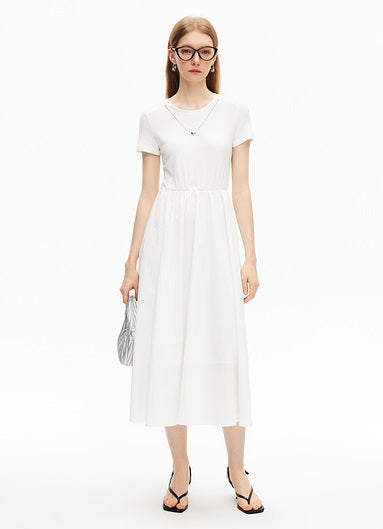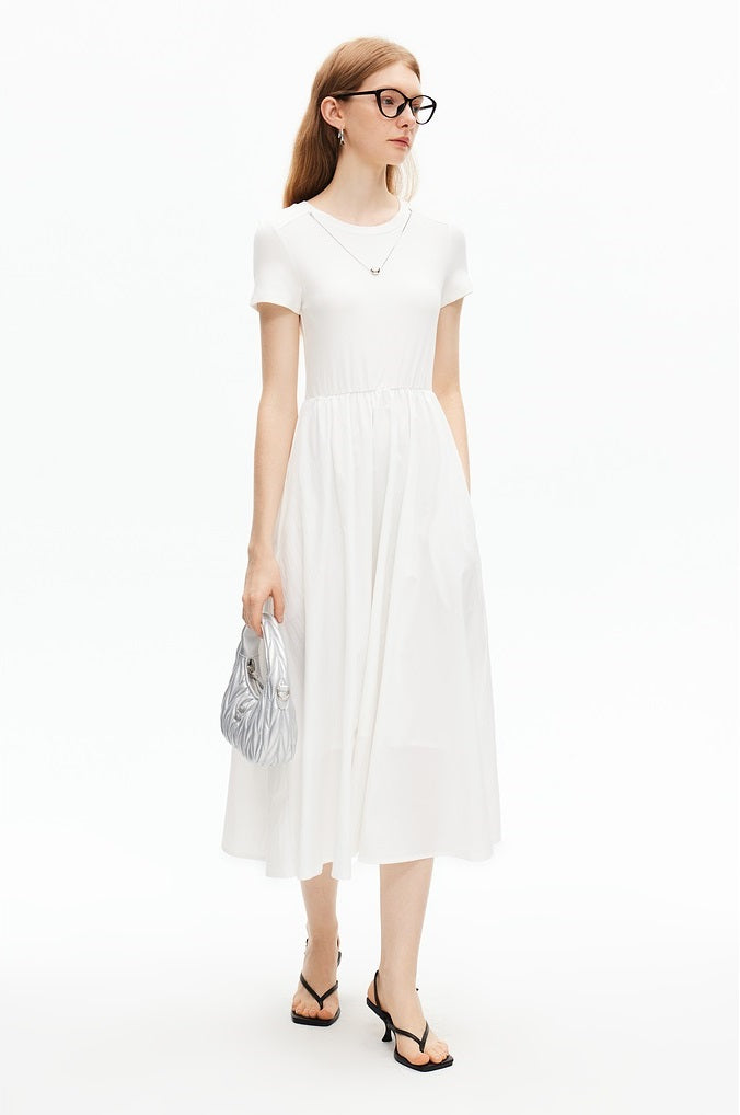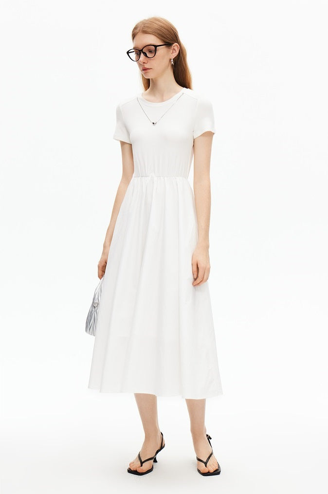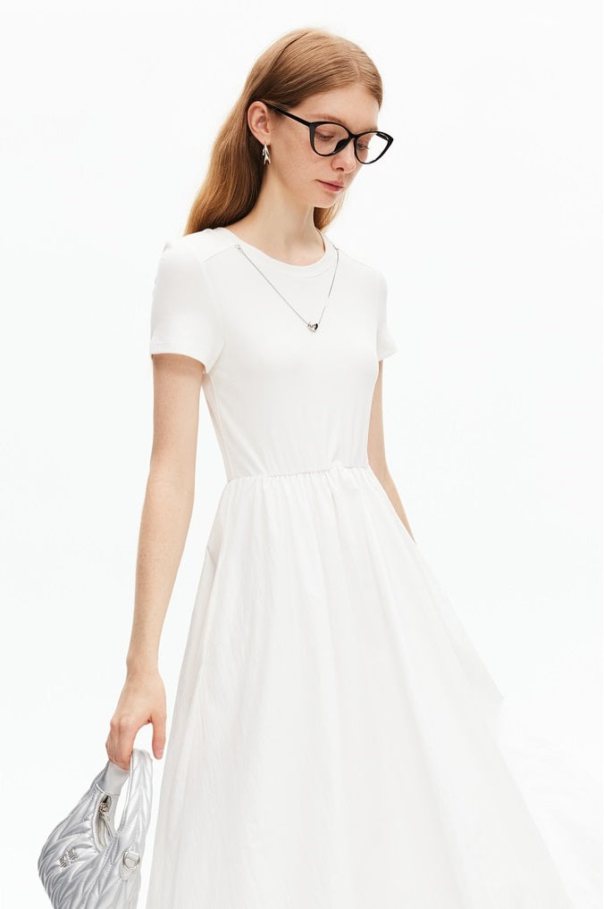 This dress is perfect for daily wear, offering a simple round neck that flatters the face shape. The flowing skirt adds comfort and ease, making it both stylish and practical for everyday wear.
