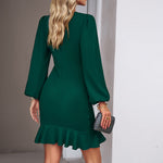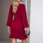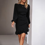 Ruffled Hem Puff Sleeve Dress
