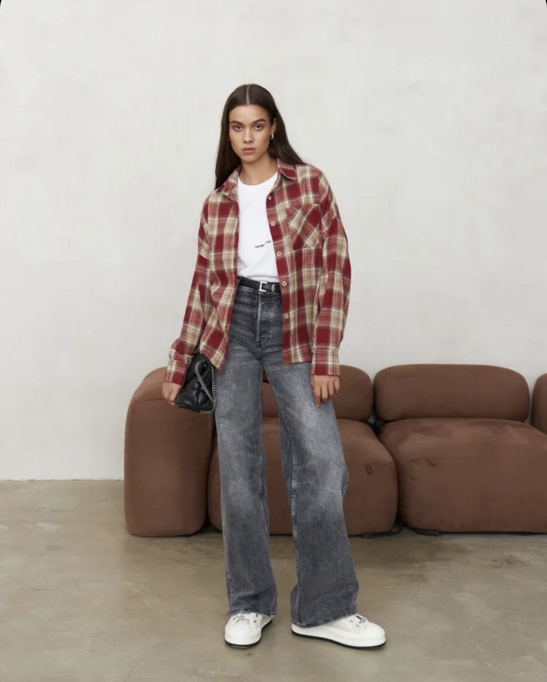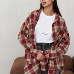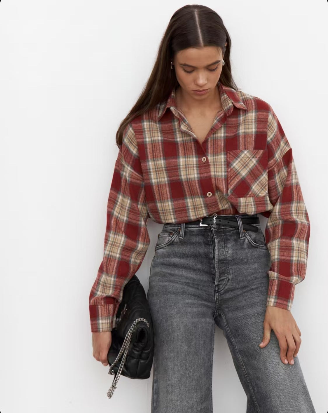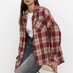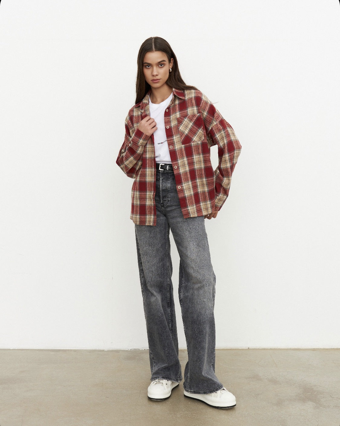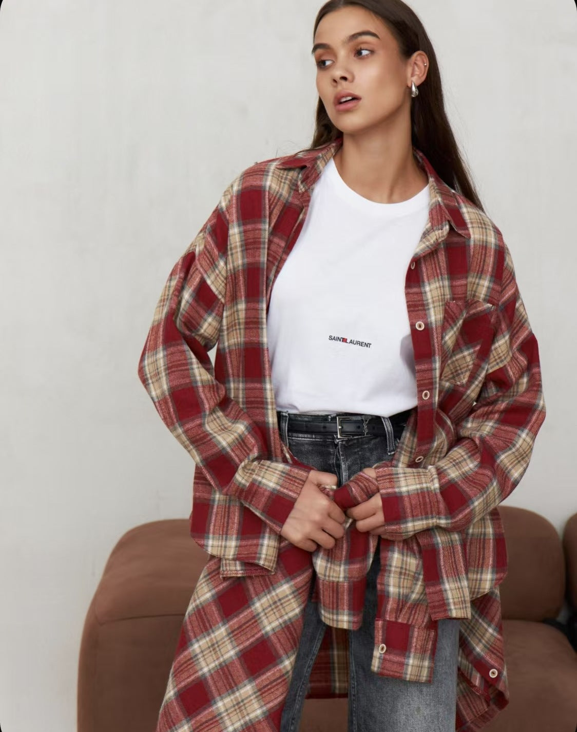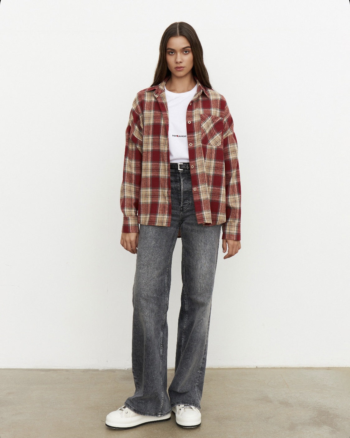 Crafted from soft, breathable fabric, this relaxed-fit shirt features a rich rust red plaid pattern accented with warm beige and muted grey tones. The classic button-front design is complemented by a single chest pocket and a gently curved hem, offering an effortless yet refined look. The fabric’s subtle texture enhances its visual depth, making it both comfortable and visually appealing. Its timeless check pattern and high-quality finish ensure it remains a versatile, enduring piece in any wardrobe.