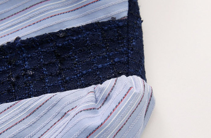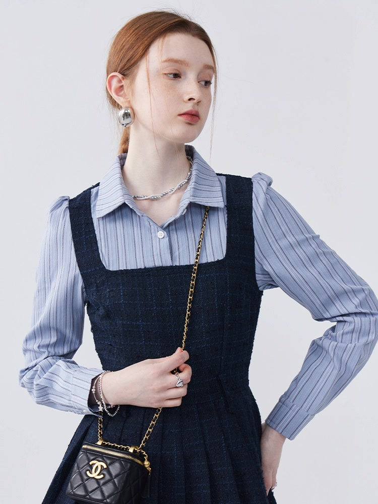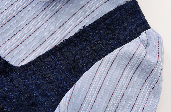 Striped Lapel Patchwork Dress