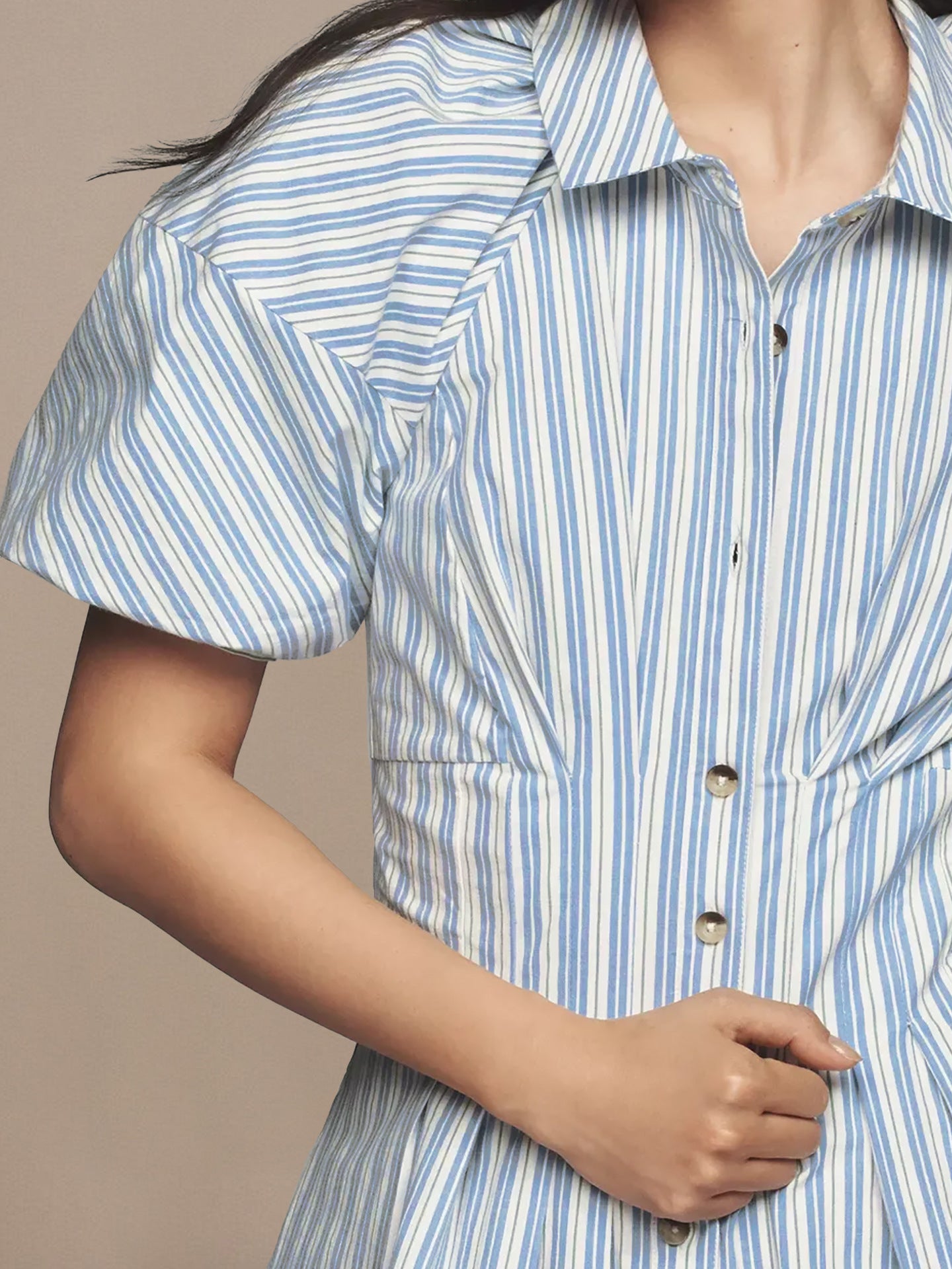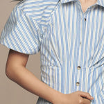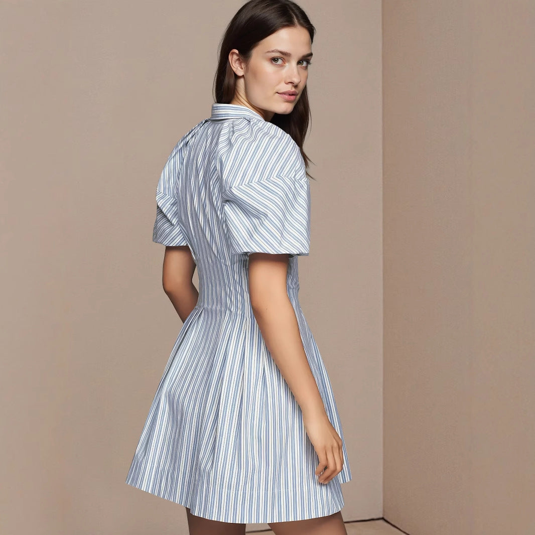 Striped Puff Sleeve Button-Front Mini Dress