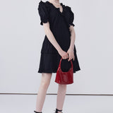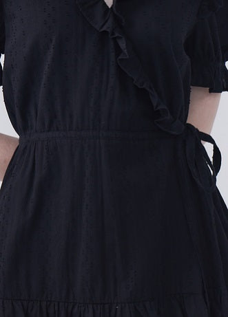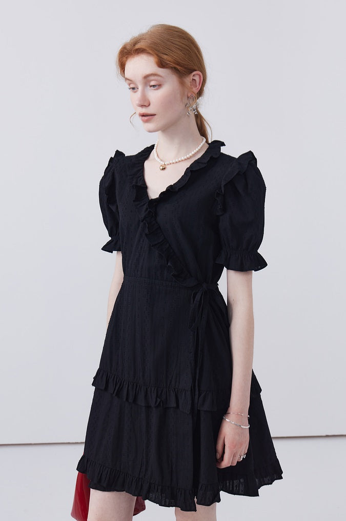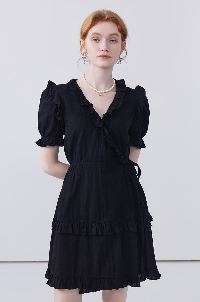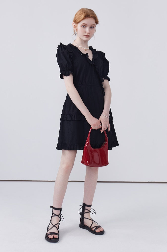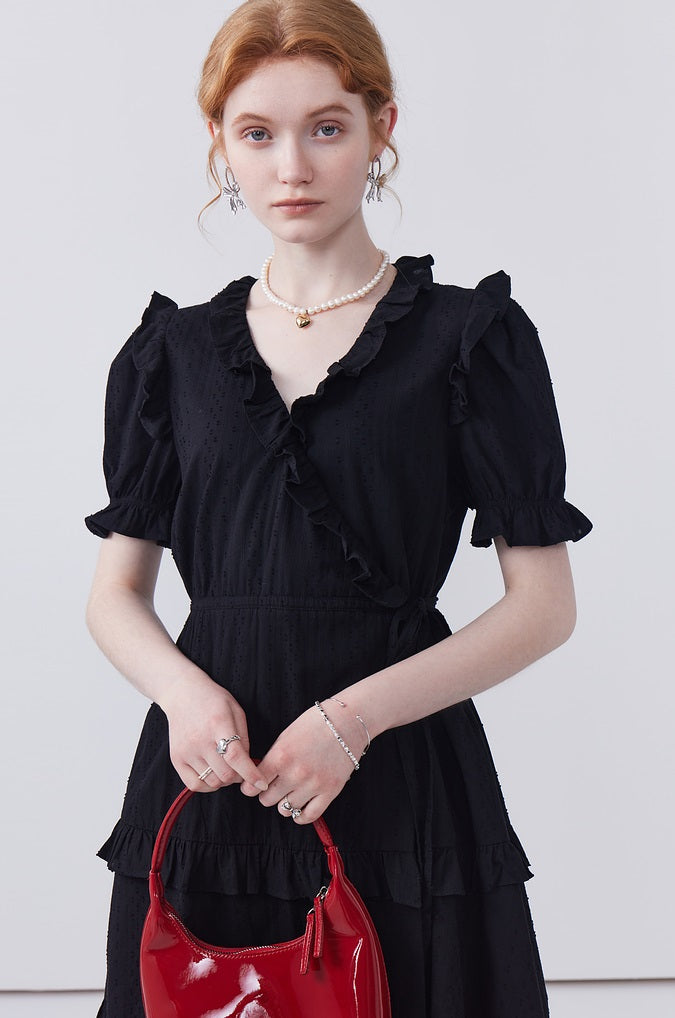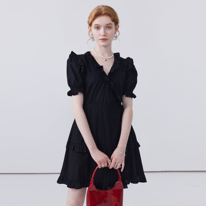 This dress features a fashionable V-neck adorned with delicate lace, adding a touch of elegance. The lace-up design enhances the silhouette, allowing you to adjust it for a figure-flattering fit.