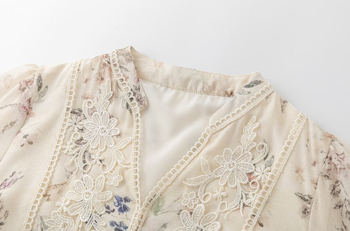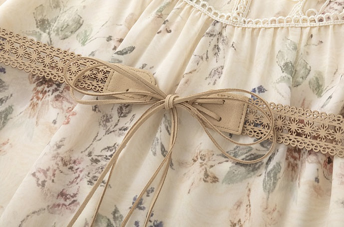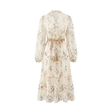 This dress features a slim V-neck for a relaxed and flattering look. The exquisite belt enhances the waistline, while the lace cuffs add an elegant and comfortable touch, perfect for a chic and sophisticated style.