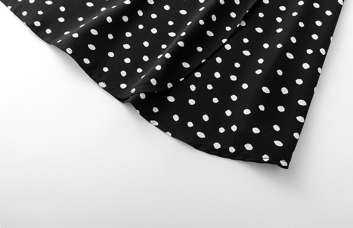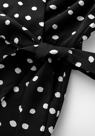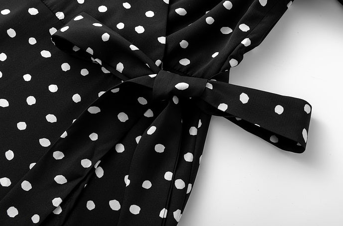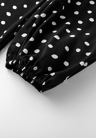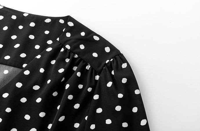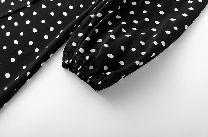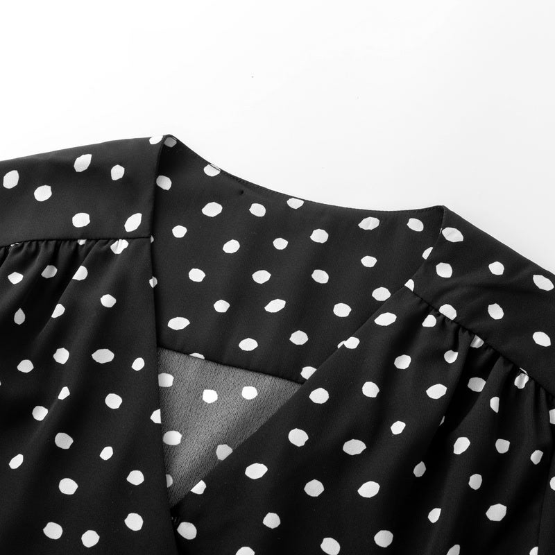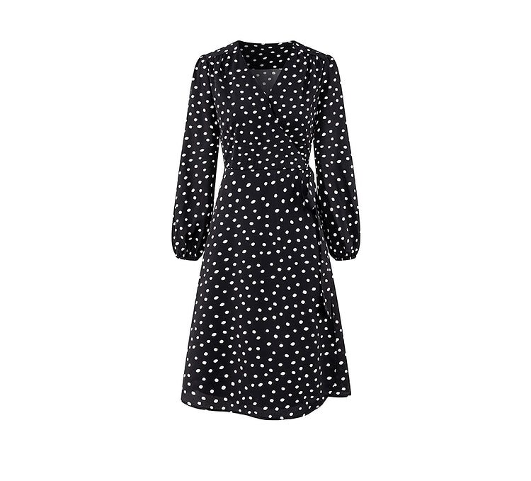 V-Neck Spotted Long Sleeved Dress