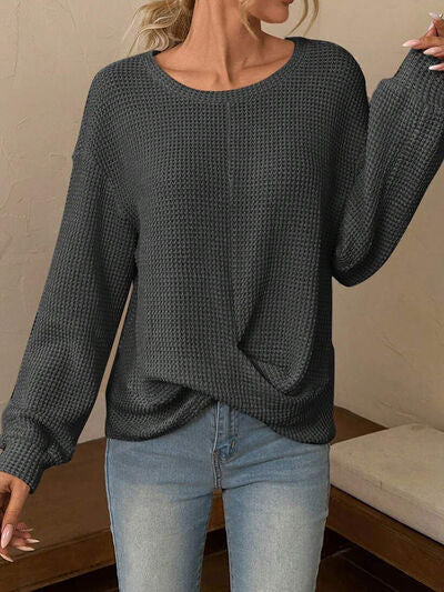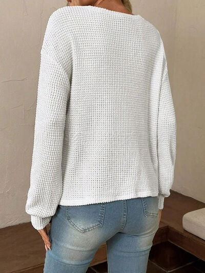 Waffle Knit Crew Neck Long-Sleeve Sweater