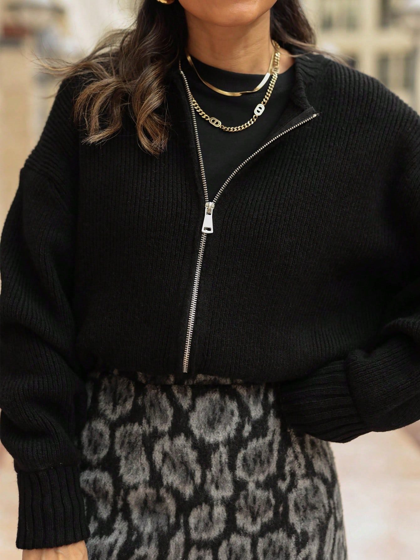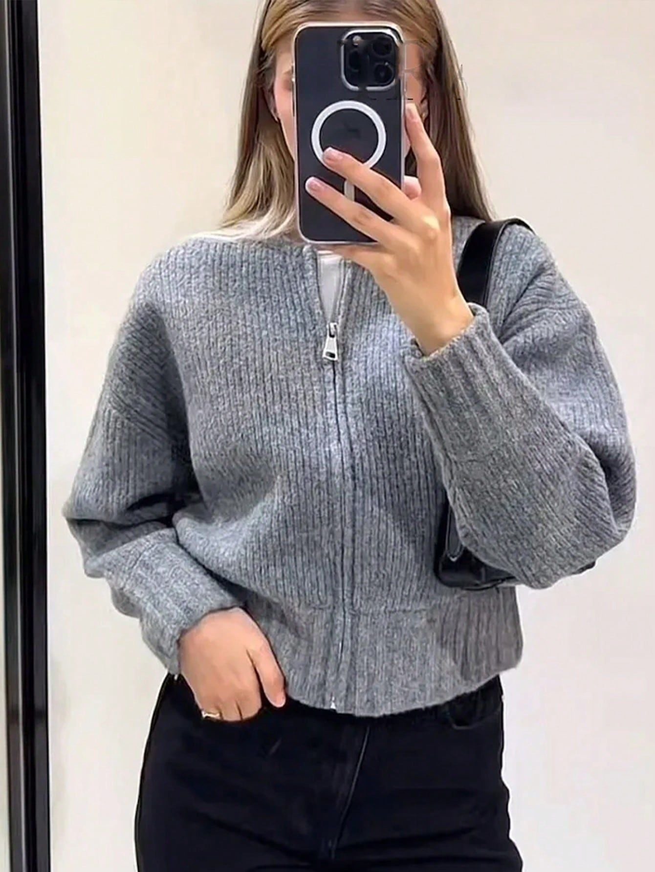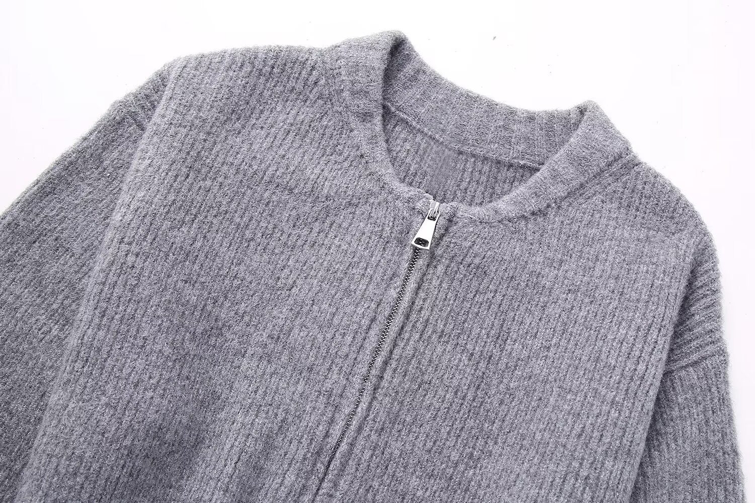This stylish knitted jacket blends a structured silhouette with the soft comfort of knitwear. Featuring a sleek front zipper closure, it offers both functionality and a modern touch, making it a perfect choice for effortless layering. The ribbed hem and cuffs add a refined detail while ensuring a snug fit. With a relaxed fit and versatile design, this piece pairs seamlessly with jeans, skirts, or casual trousers, making it an essential addition to any wardrobe. Available in multiple colors to suit different styles and moods.