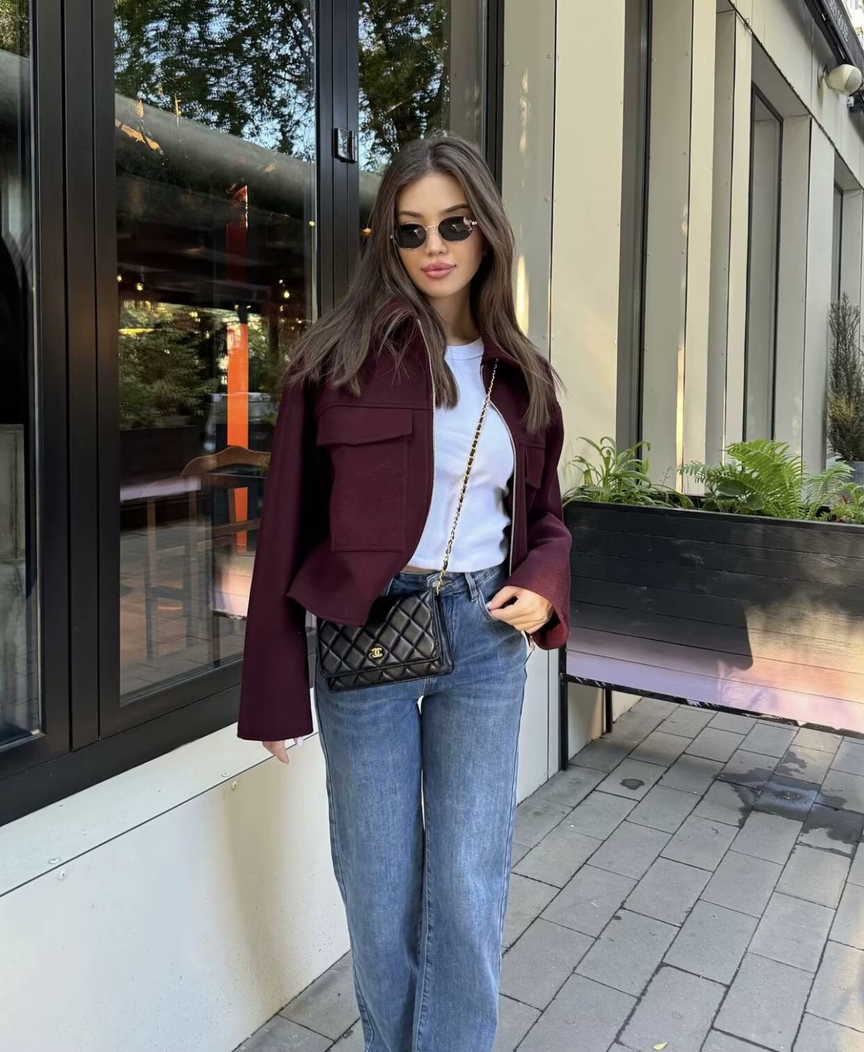 Crafted for the modern woman, this structured tweed jacket strikes a perfect balance between timeless elegance and everyday wearability. Its boxy silhouette and oversized flap pockets lend a bold, contemporary edge, while the rich wool blend offers warmth without compromising style. The front zipper closure ensures practicality, making it easy to layer over casual or semi-formal outfits. Available in multiple refined shades, it transitions effortlessly from city strolls to chic gatherings—an essential for the sophisticated seasonal wardrobe.